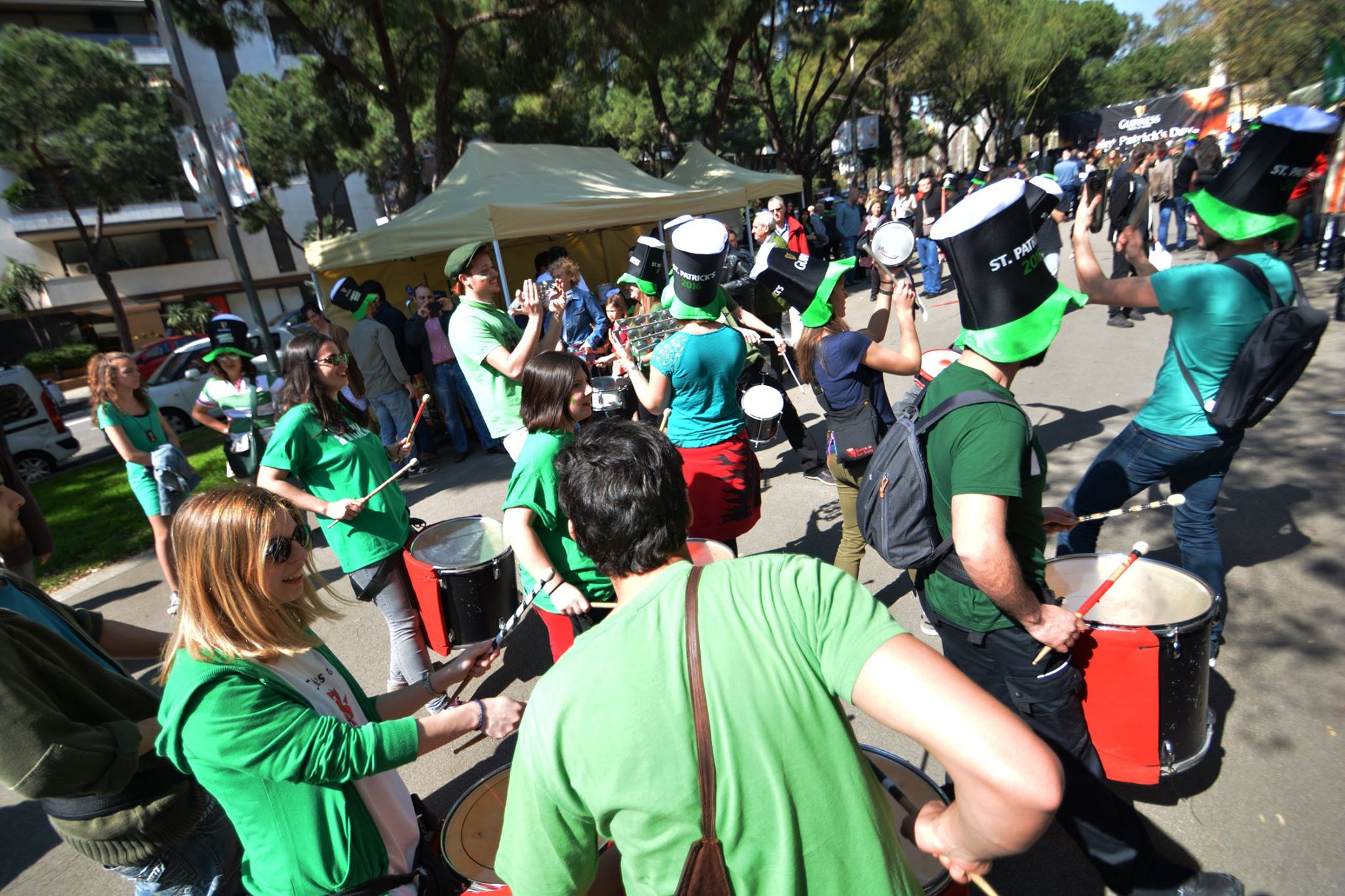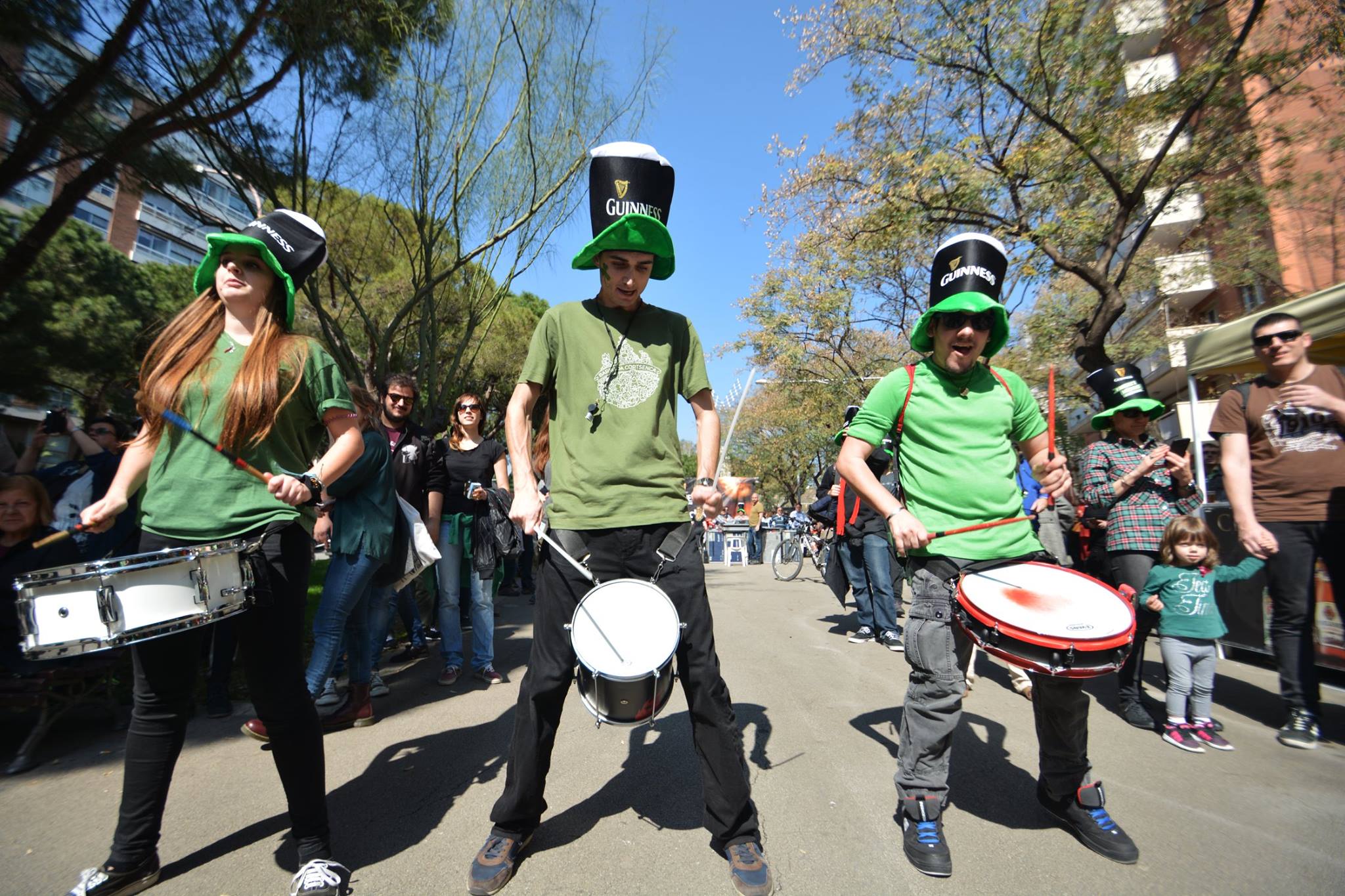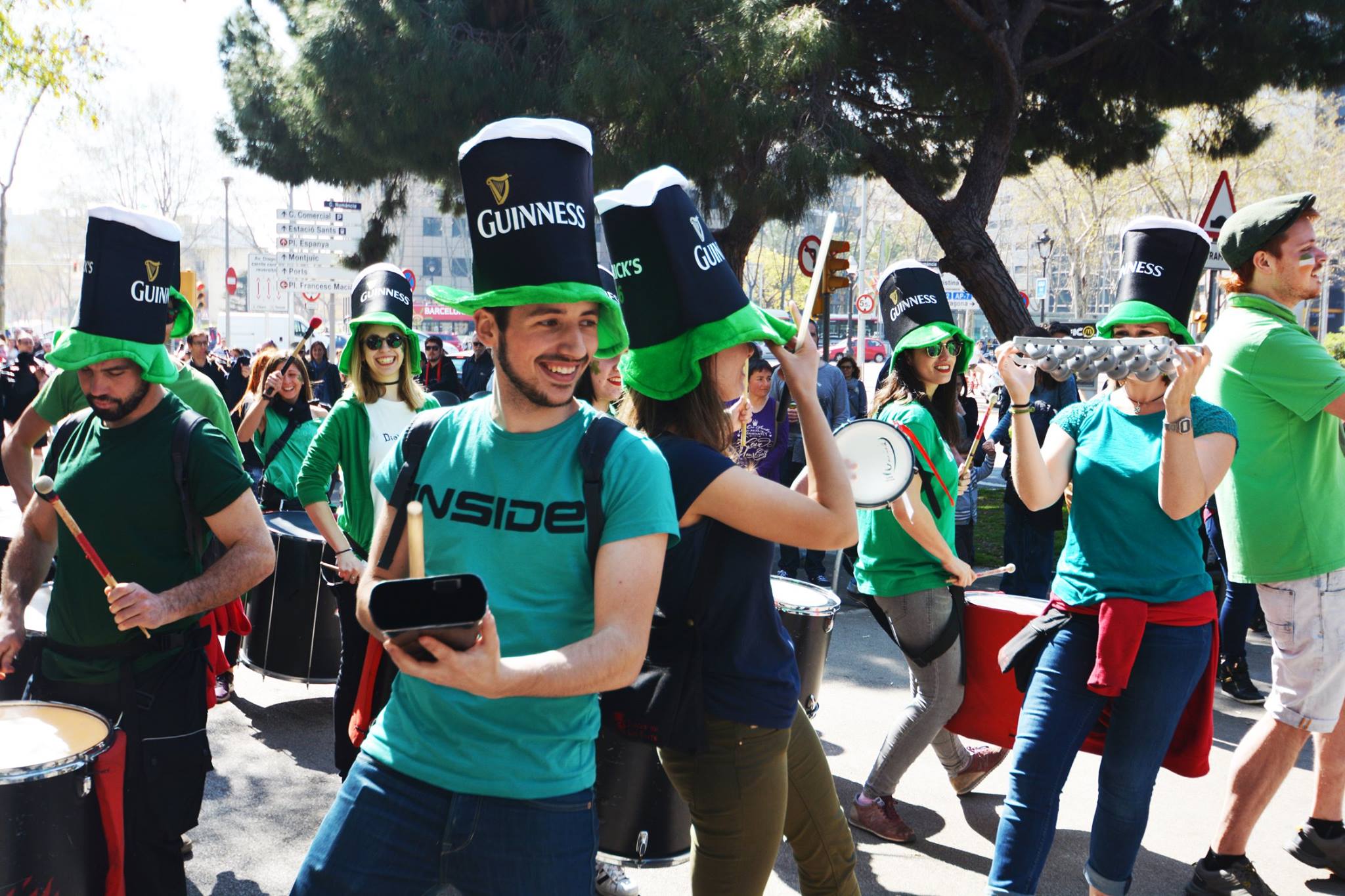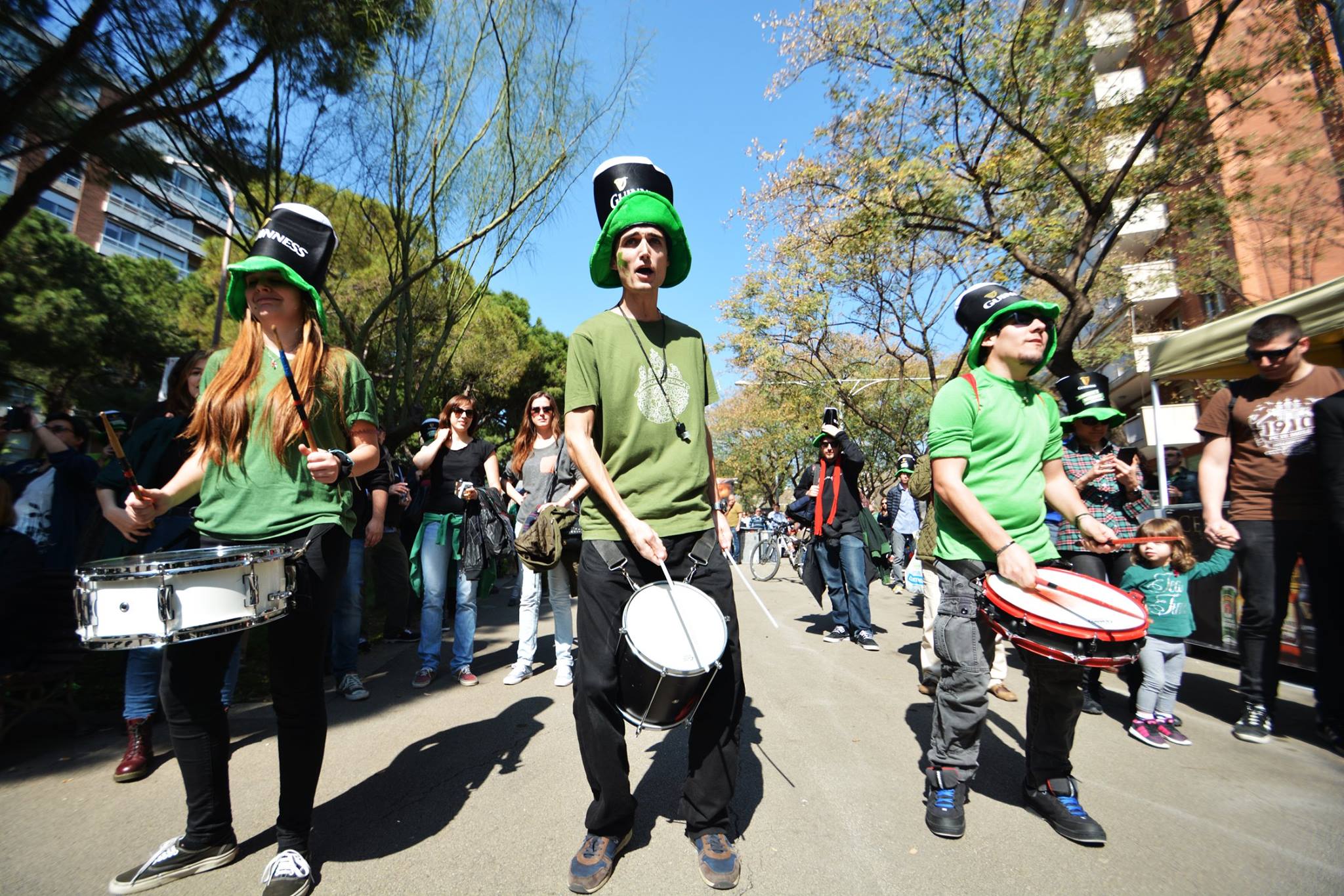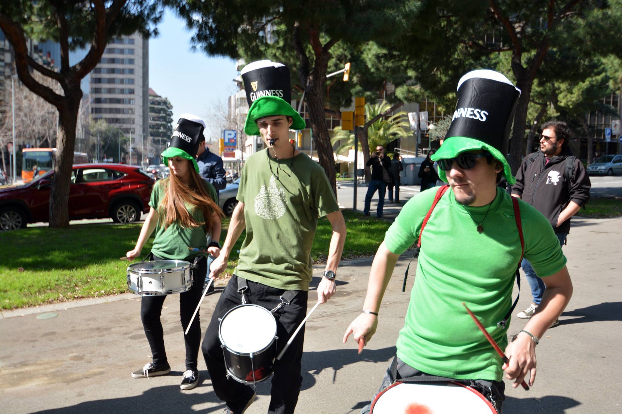 A les 11:30 vam fer una gran tabalada pujant des de la Diagonal fins quasi bé a dalt de tot de Numància, on vam poder compartir un moment únic d’unió de cultures catalana i irlandesa, tocant juntament amb el grup de gaites celta, la City of Barcelona Pipe Band. Un cop vam acabar vam gaudir de la música irlandesa i dels balls típics que ens feien moure sense parar.
