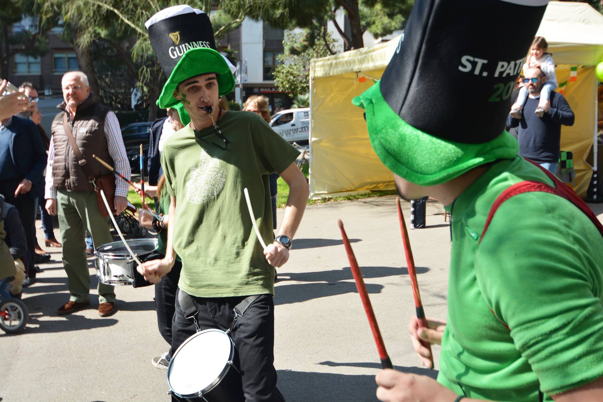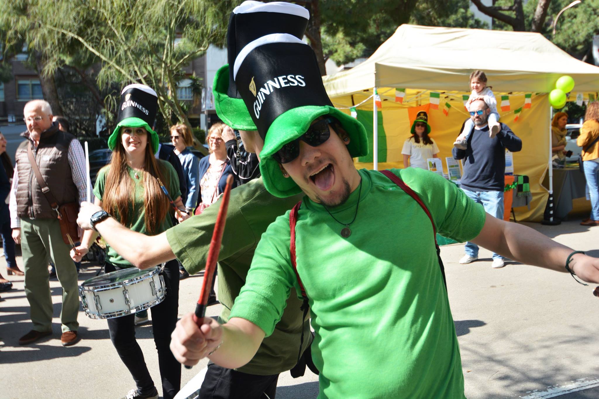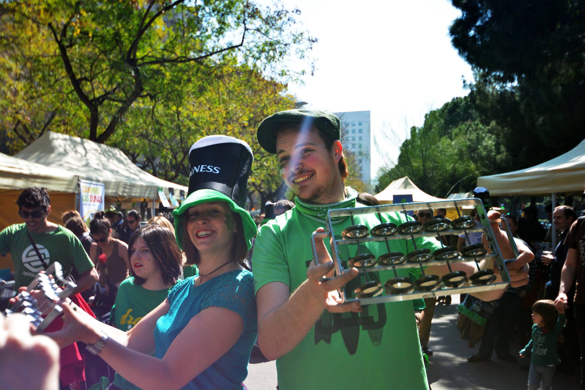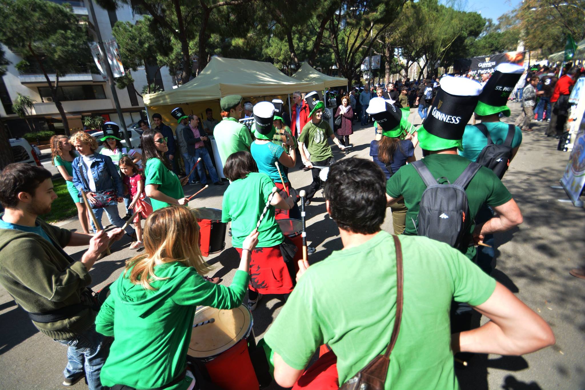 A les 11:30 vam fer una gran tabalada pujant des de la Diagonal fins quasi bé a dalt de tot de Numància, on vam poder compartir un moment únic d’unió de cultures catalana i irlandesa, tocant juntament amb el grup de gaites celta, la City of Barcelona Pipe Band. Un cop vam acabar vam gaudir de la música irlandesa i dels balls típics que ens feien moure sense parar.