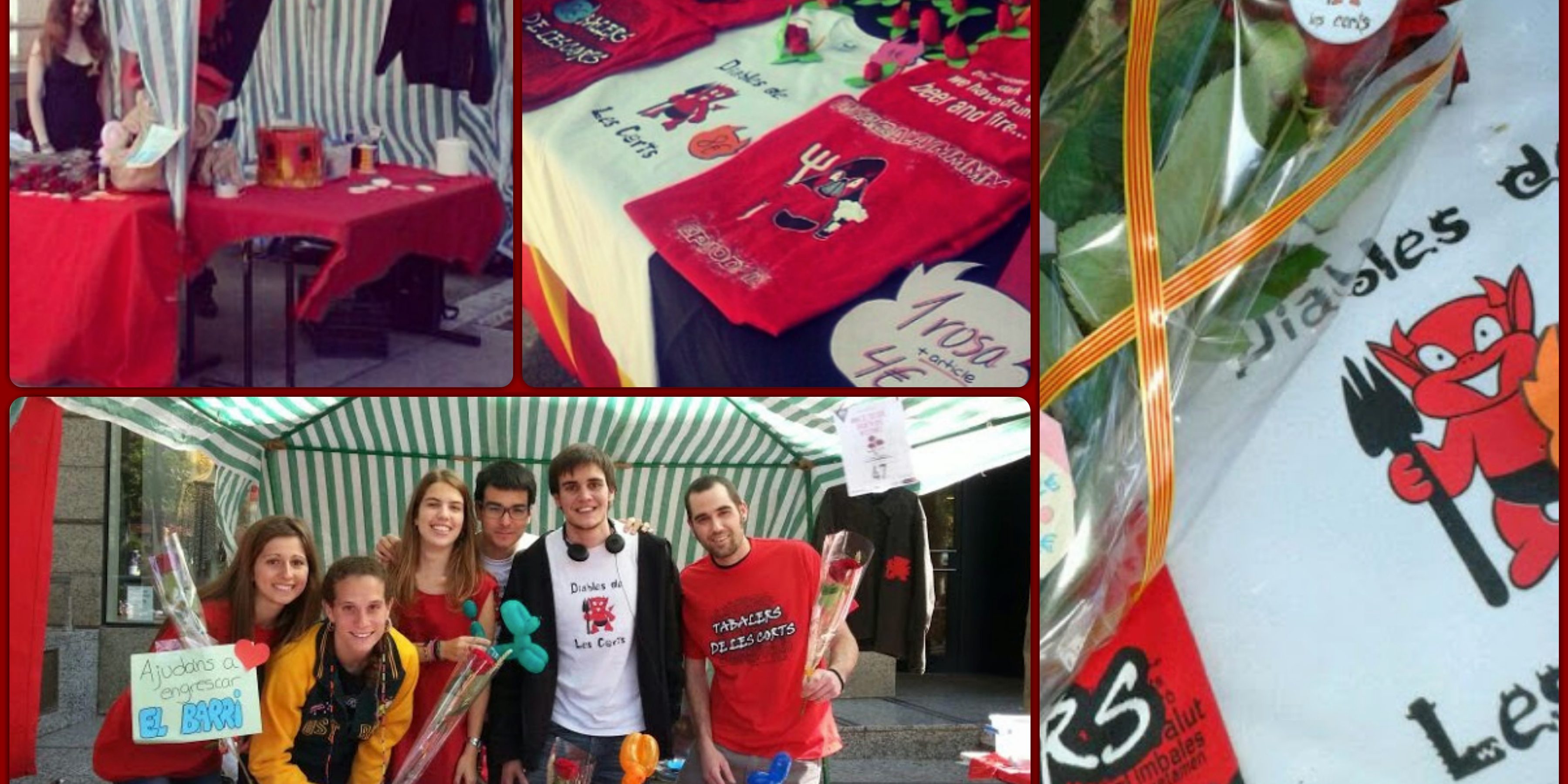 El passat dimecres 23 d’abril, diada de Sant Jordi, Diables de Les Corts va decidir desprès d’uns anys de no fer-ho, participar activament en la diada i muntar una paradeta a la Avinguda Diagonal, dins de la Fira de Sant Jordi del barri. No tan sols per vendre roses sinó també per donar-nos a conèixer encara una miqueta més al veïns i ciutadans en general de la ciutat, i engrescar a tots aquells que van tenir un moment per passar-hi per allà.