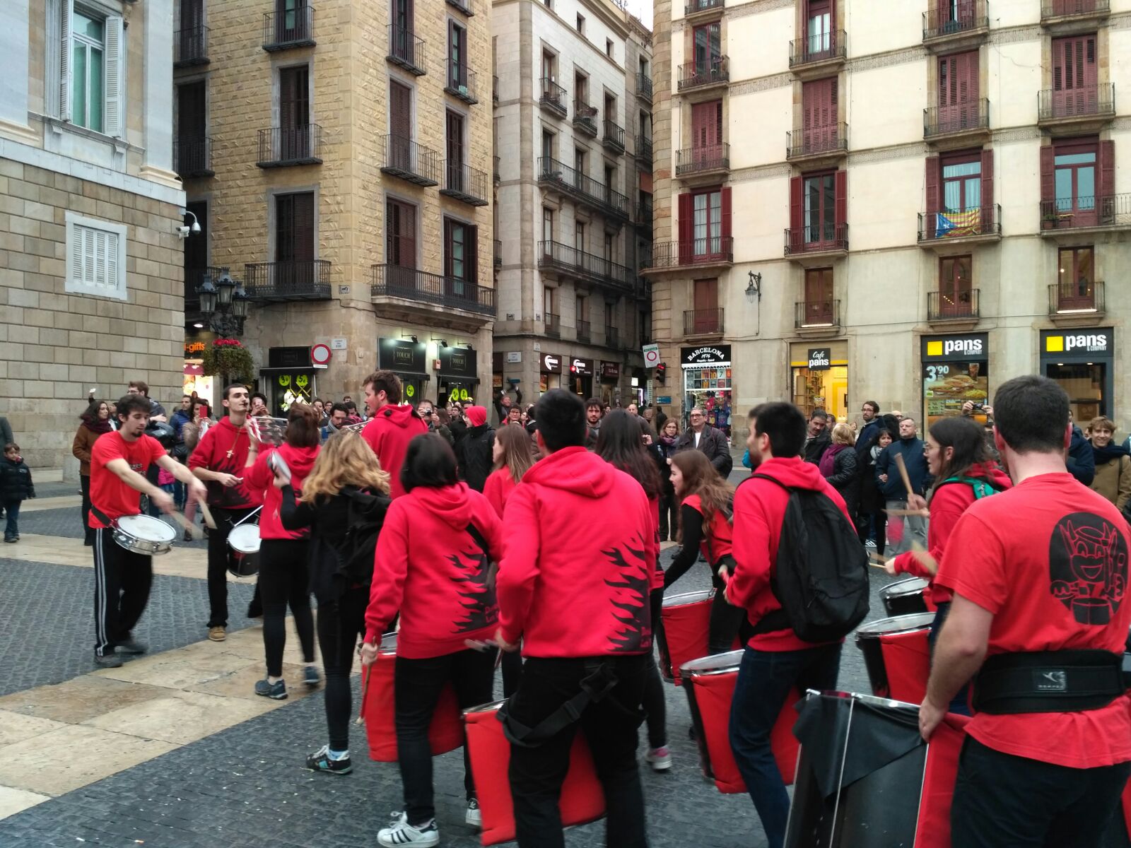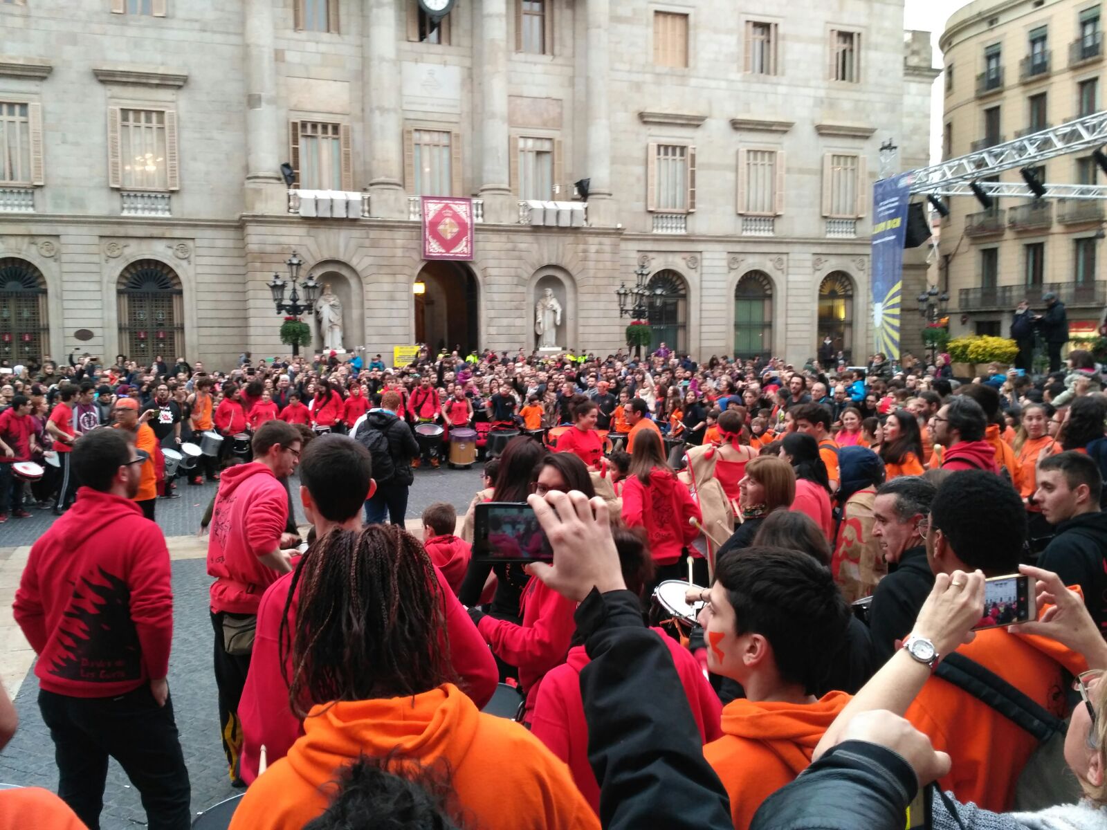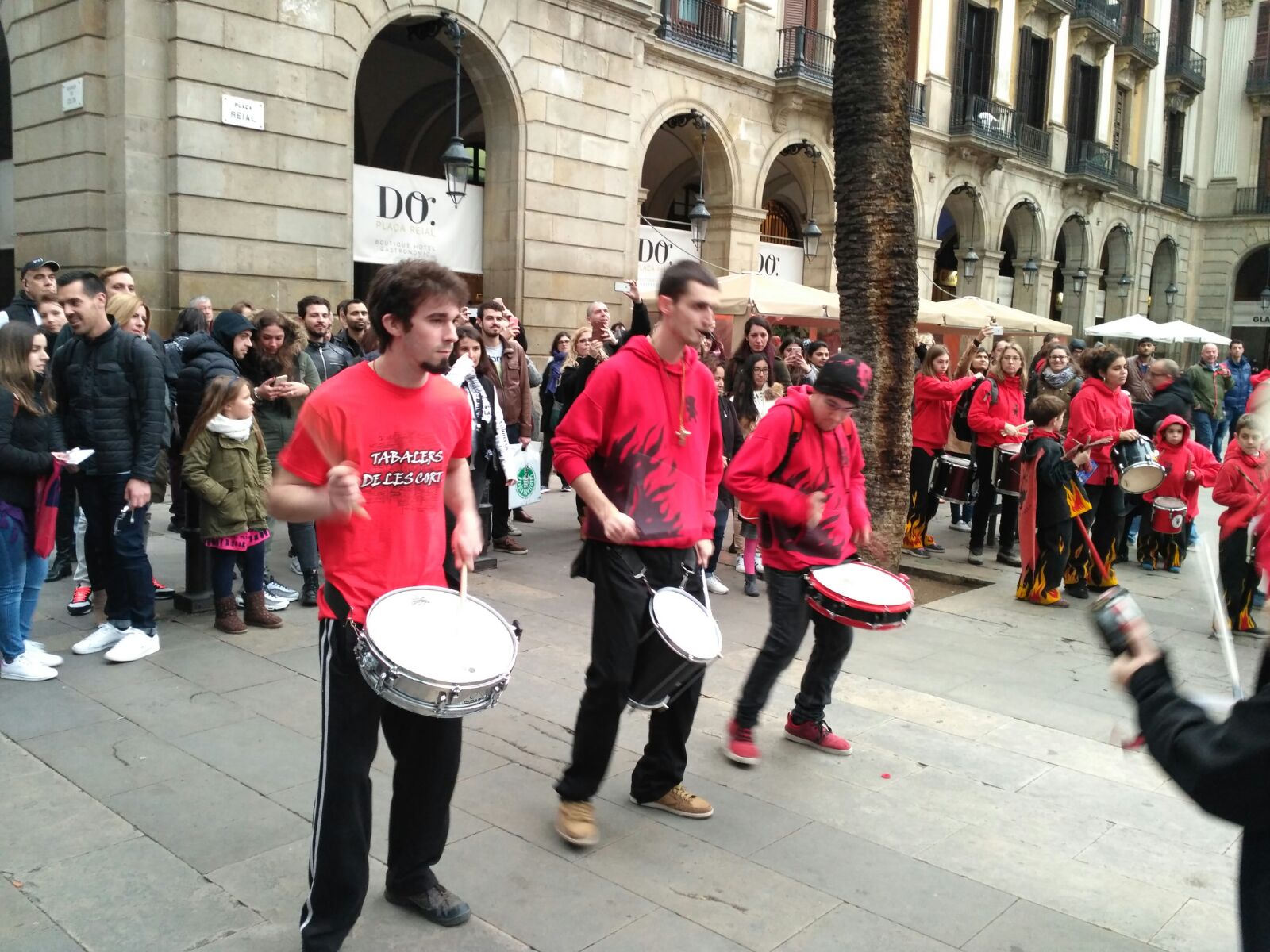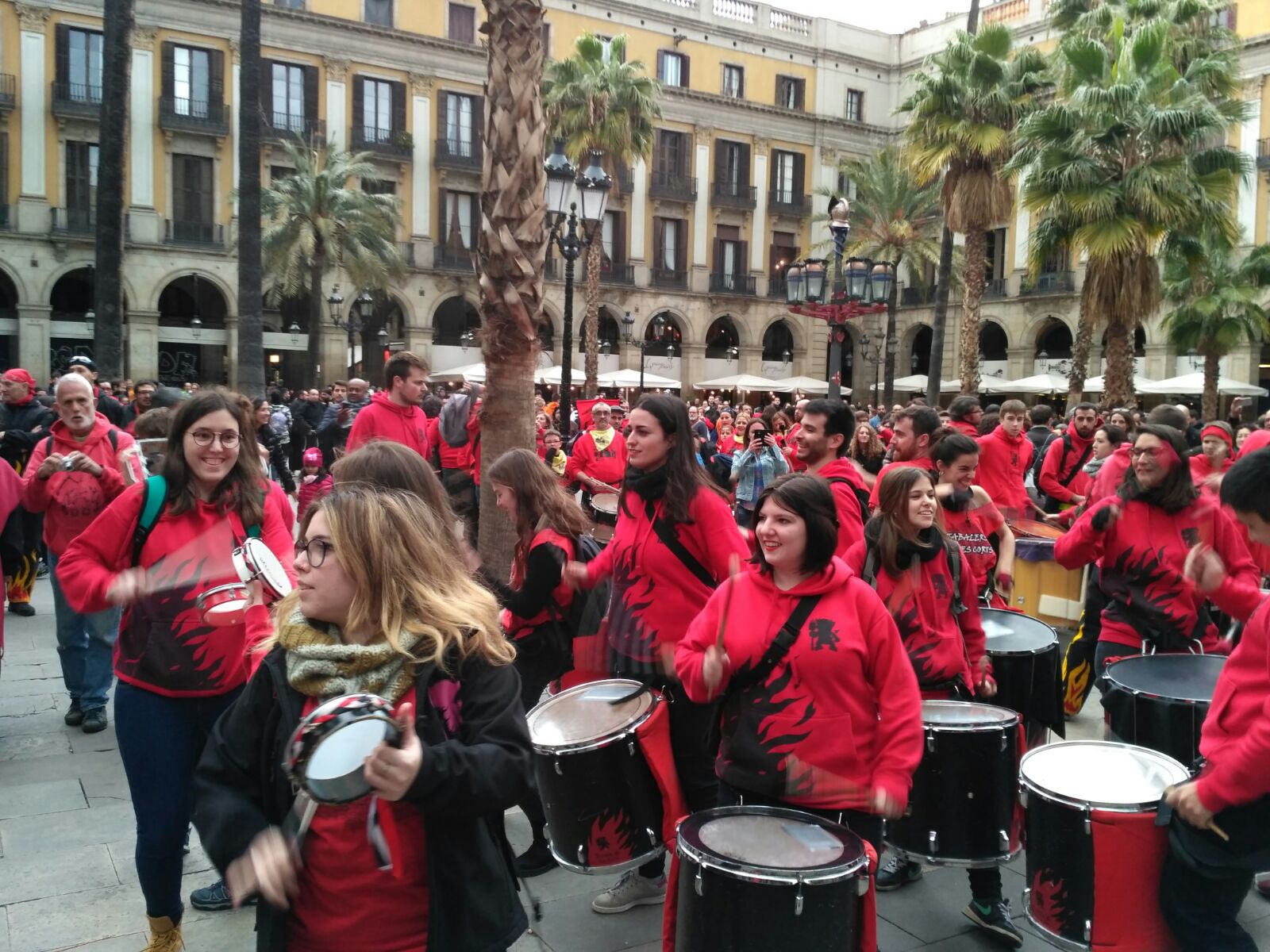 A més a més, vam tenir l’honor d’obrir la tabalada i vam anar des de Plaça Reial, passant per La Rambla i el Carrer Ferran fins a la Plaça Sant Jaume. Allà, desenes de tabalers de totes les colles participants vam tocar conjuntament. Grans i petits, barrejats, tots tocant al mateix so, per deixar pas a les colles de diables infantils que entraven amb ganes de cremar i de fer córrer a qualsevol al Correfoc -dels més menuts- de Santa Eulàlia.