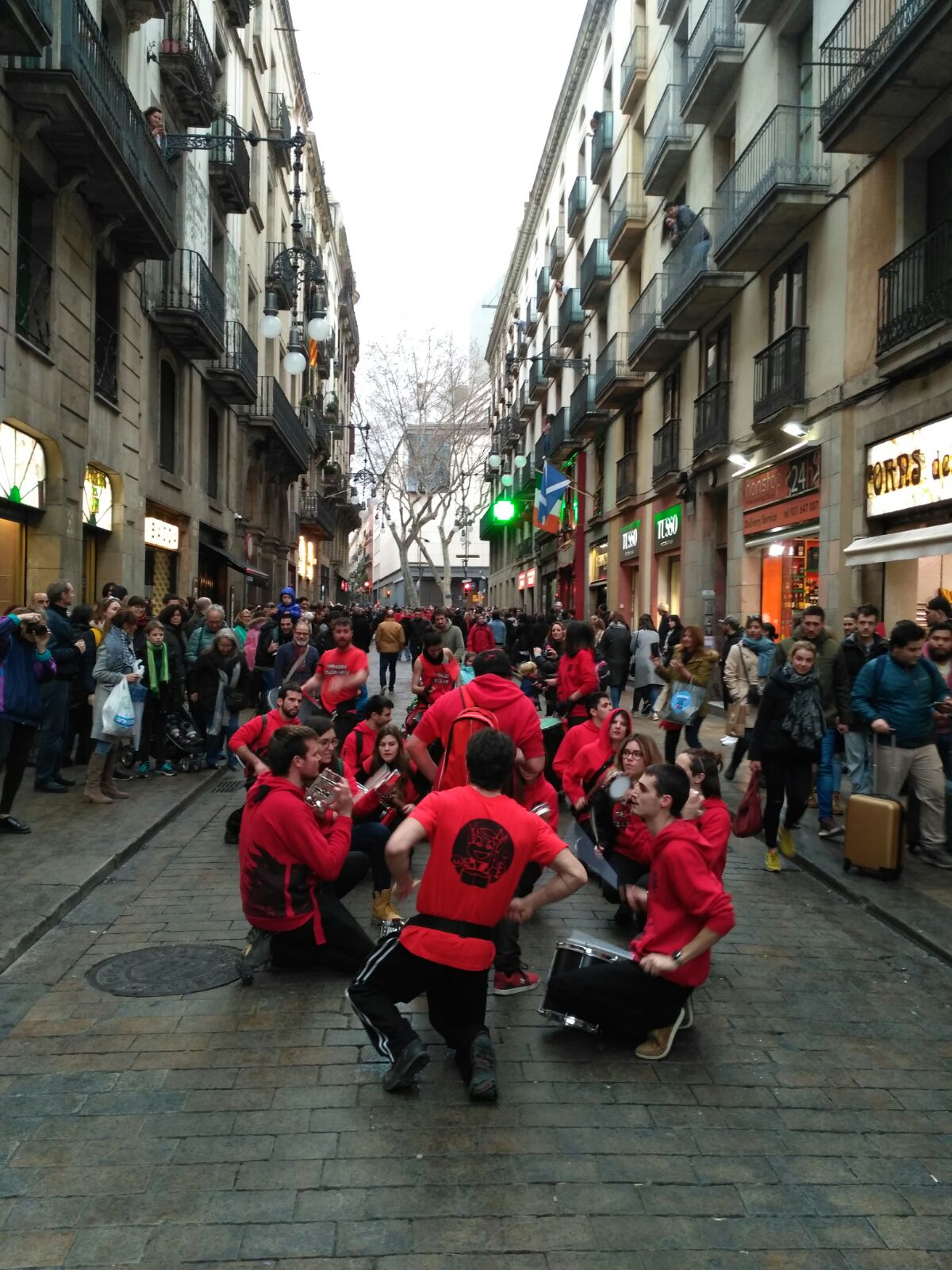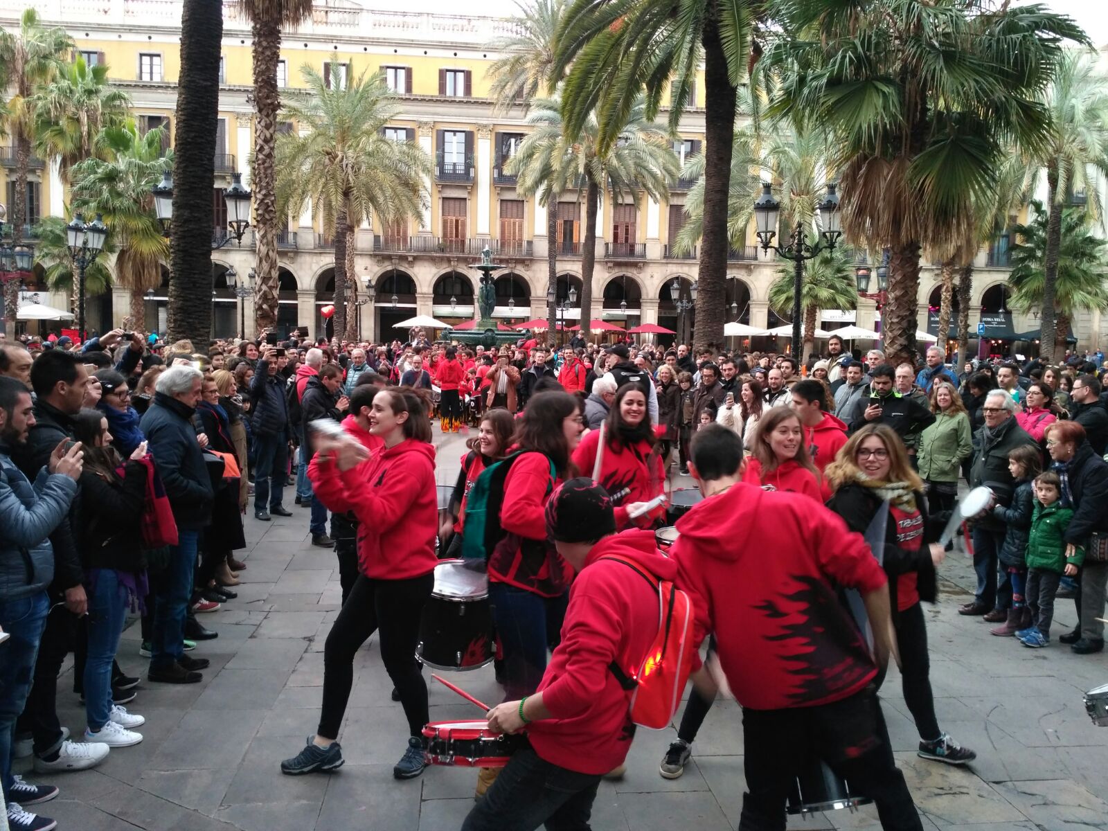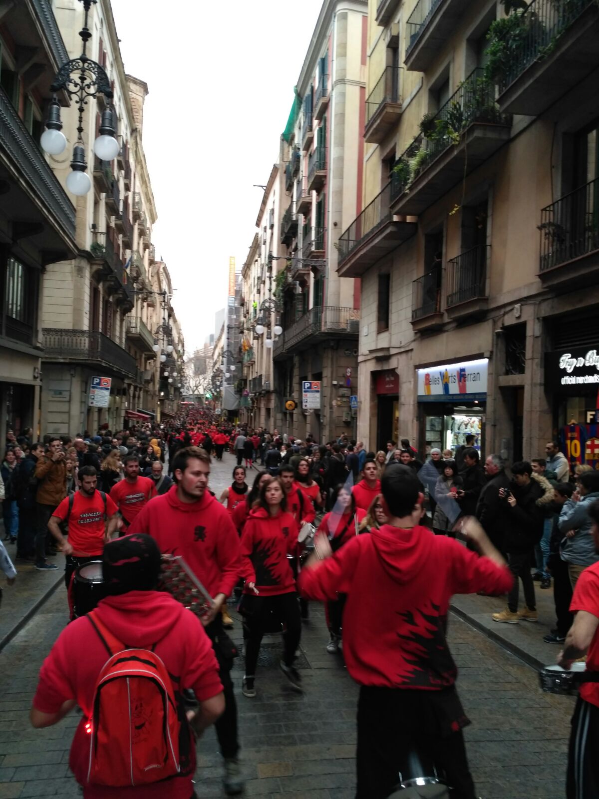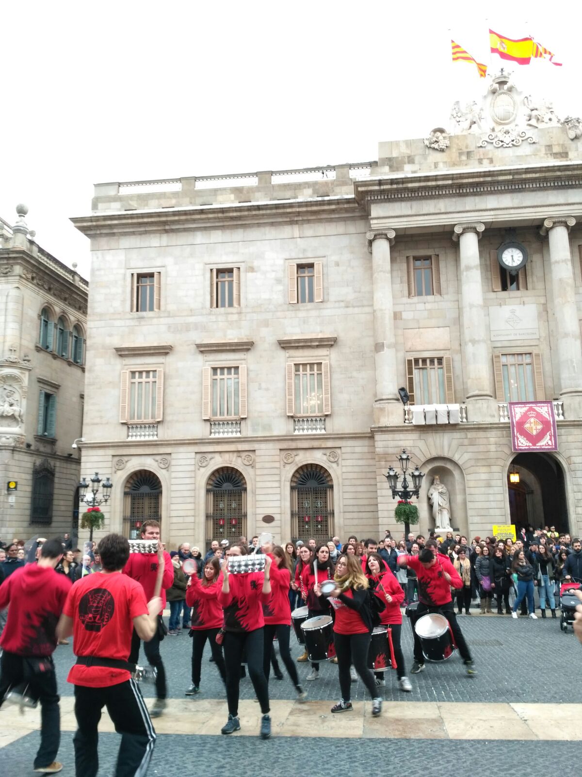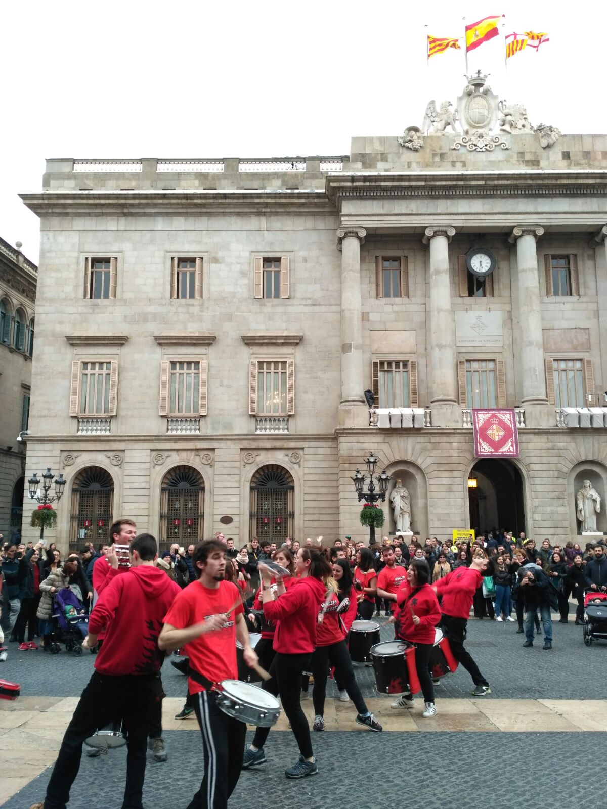 A més a més, vam tenir l’honor d’obrir la tabalada i vam anar des de Plaça Reial, passant per La Rambla i el Carrer Ferran fins a la Plaça Sant Jaume. Allà, desenes de tabalers de totes les colles participants vam tocar conjuntament. Grans i petits, barrejats, tots tocant al mateix so, per deixar pas a les colles de diables infantils que entraven amb ganes de cremar i de fer córrer a qualsevol al Correfoc -dels més menuts- de Santa Eulàlia.