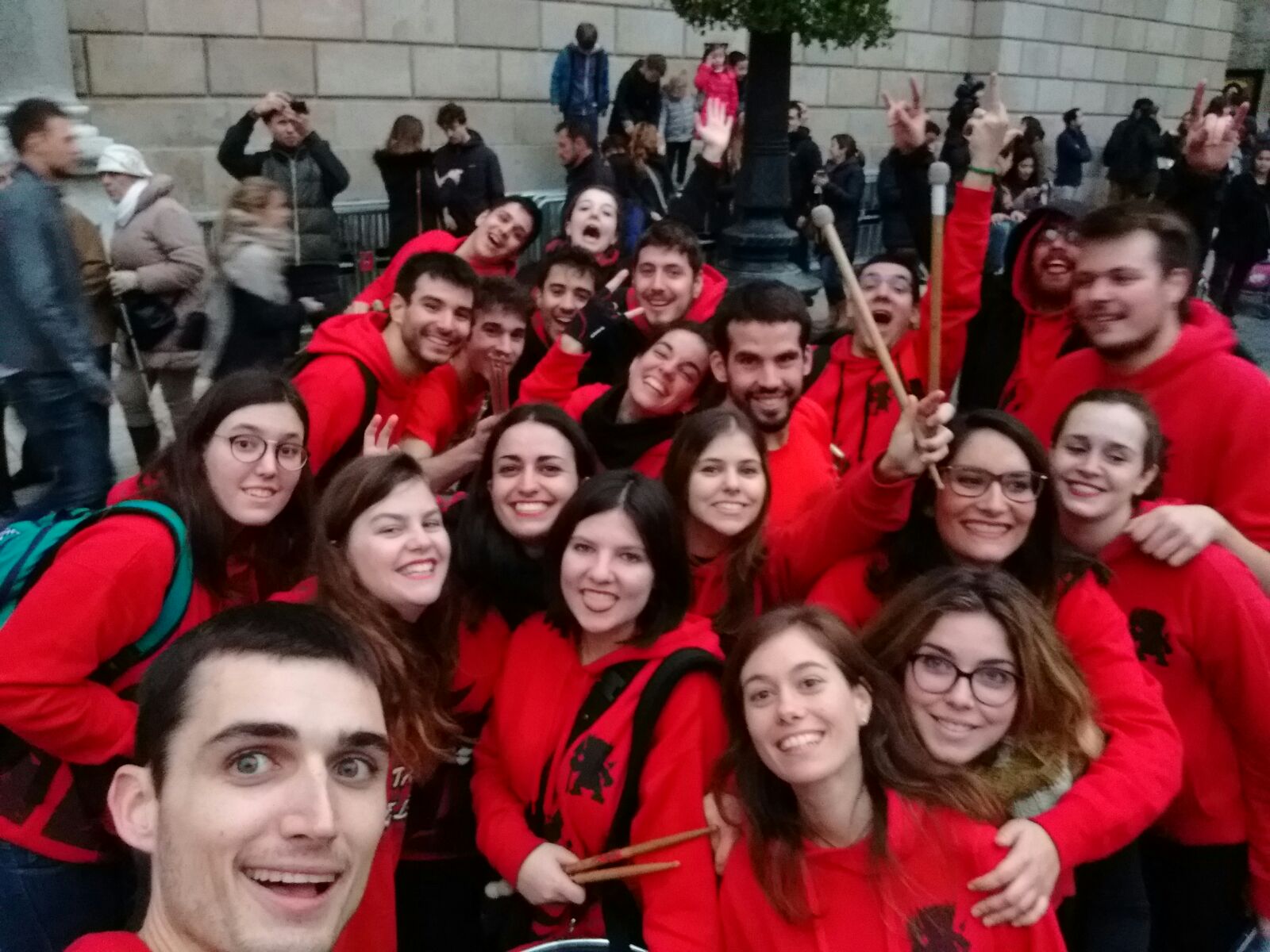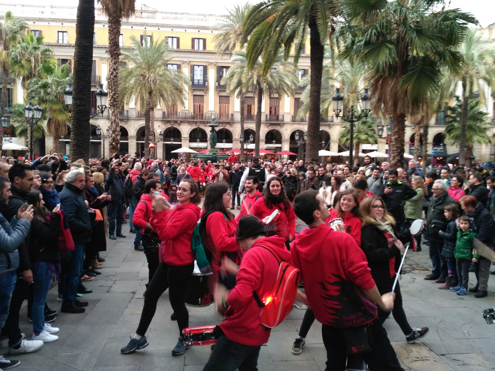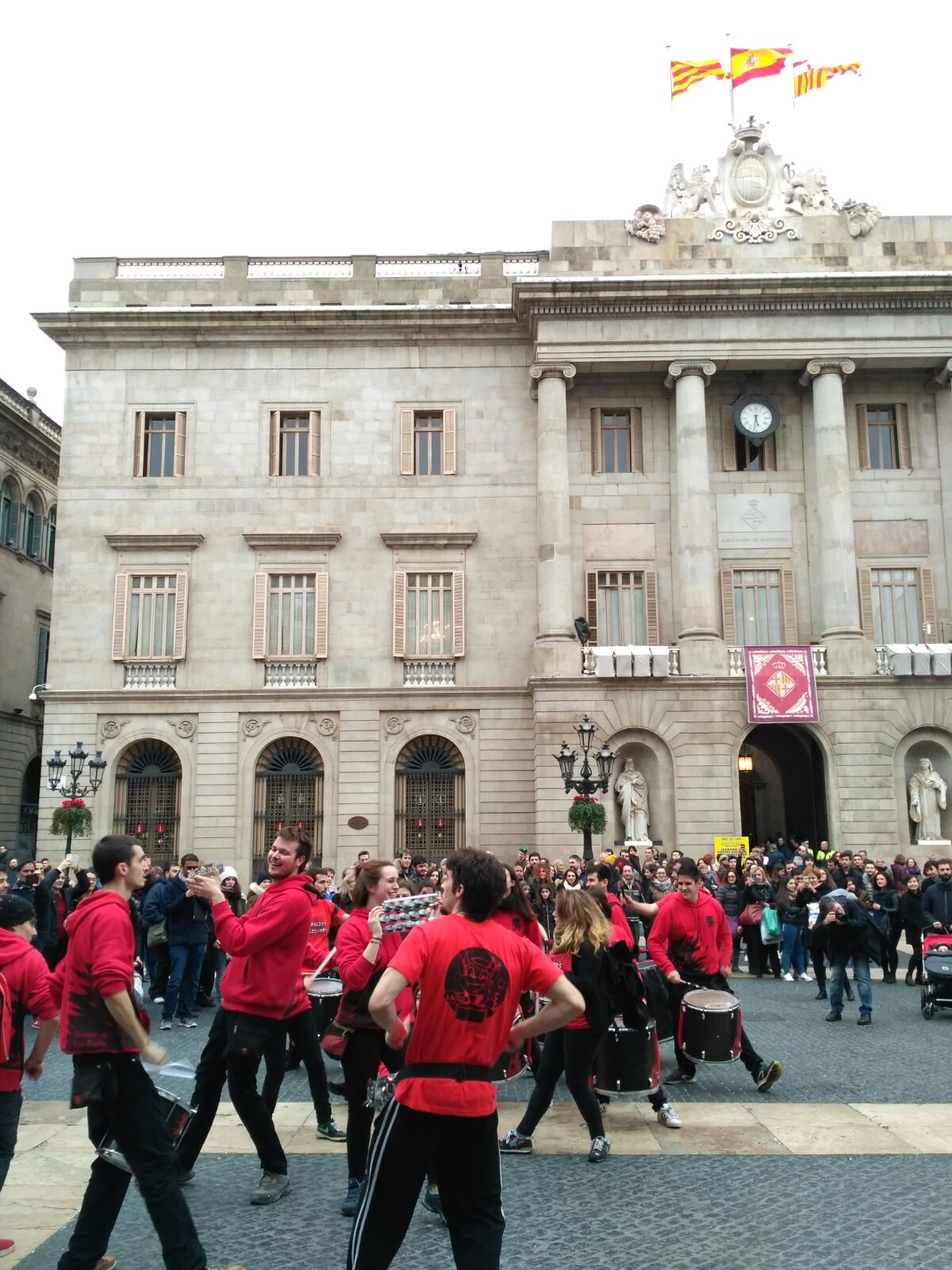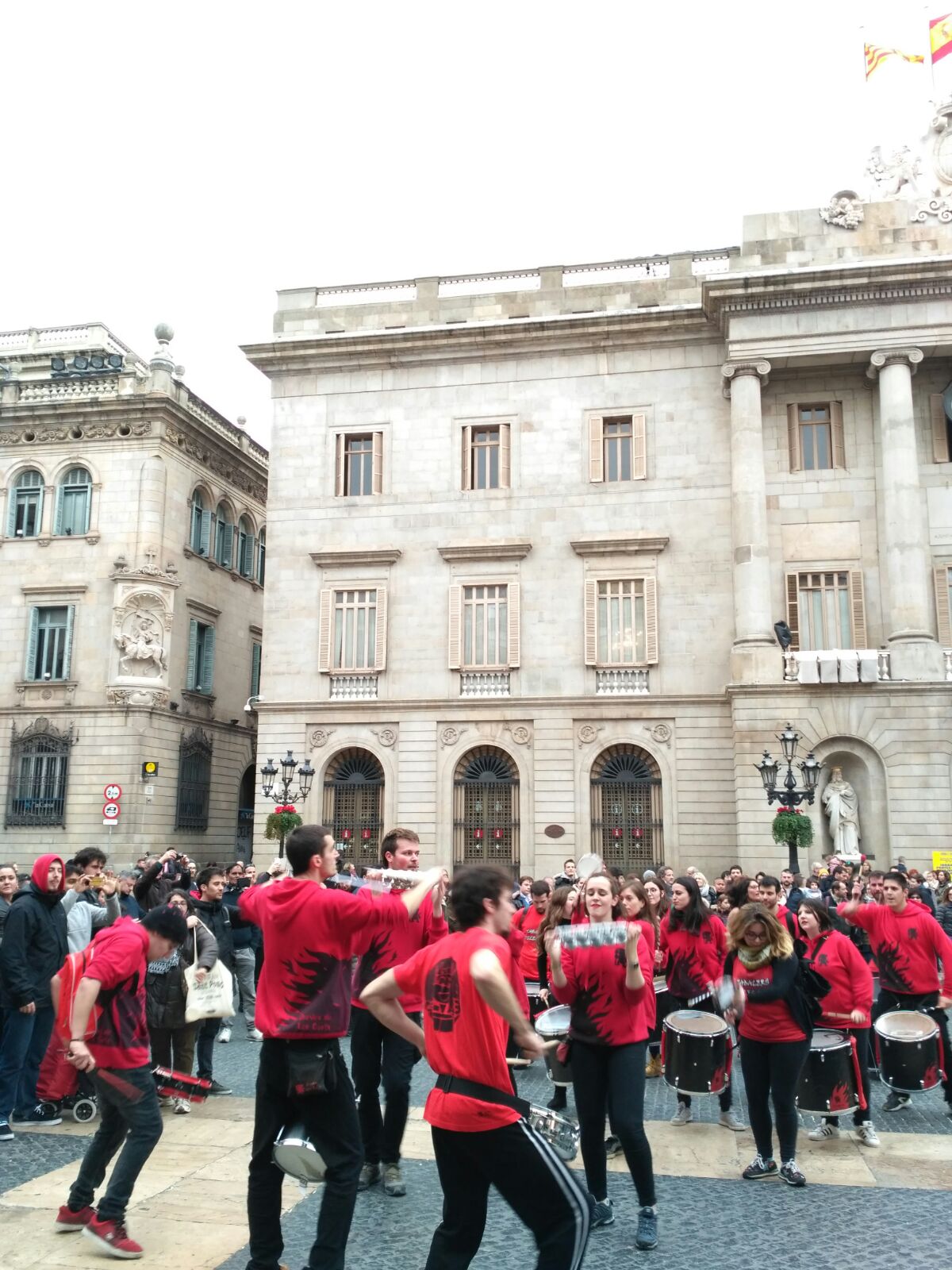 A més a més, vam tenir l’honor d’obrir la tabalada i vam anar des de Plaça Reial, passant per La Rambla i el Carrer Ferran fins a la Plaça Sant Jaume. Allà, desenes de tabalers de totes les colles participants vam tocar conjuntament. Grans i petits, barrejats, tots tocant al mateix so, per deixar pas a les colles de diables infantils que entraven amb ganes de cremar i de fer córrer a qualsevol al Correfoc -dels més menuts- de Santa Eulàlia.