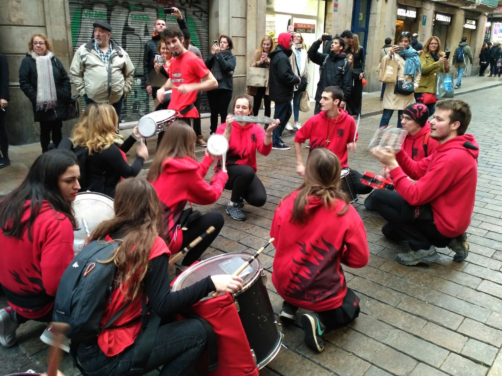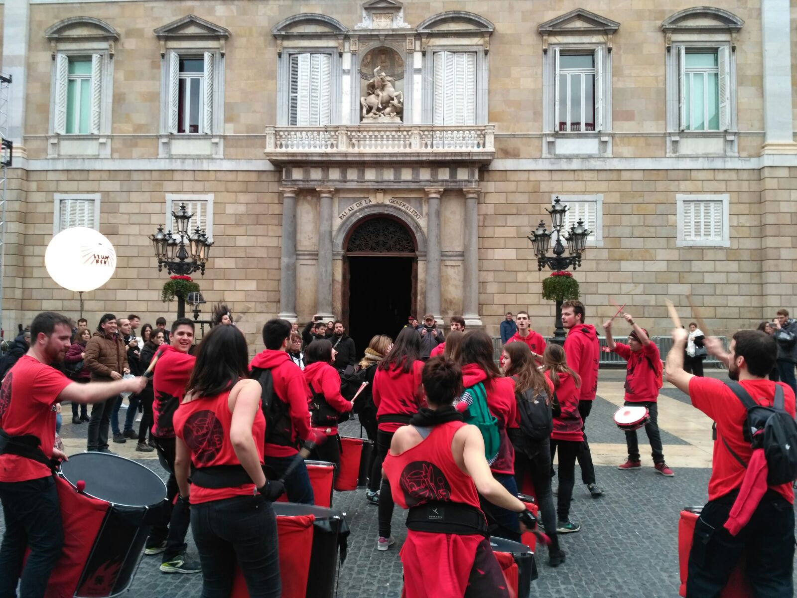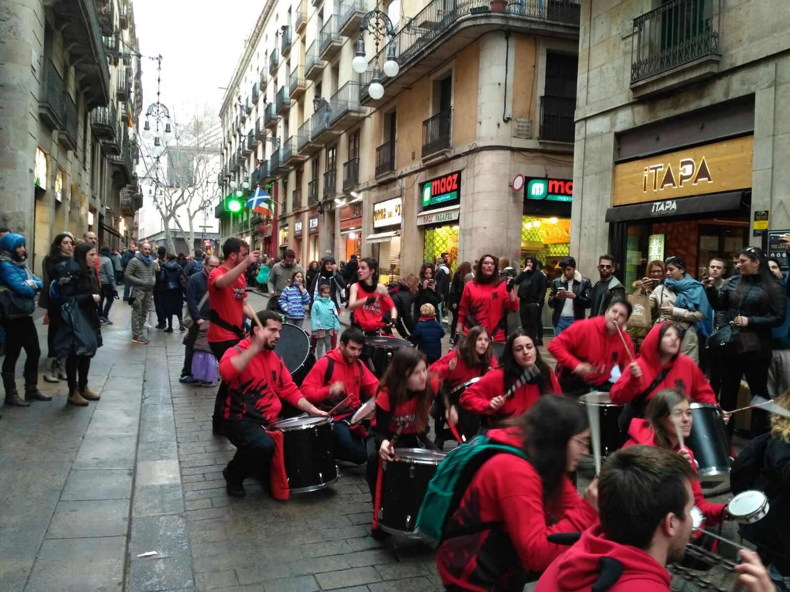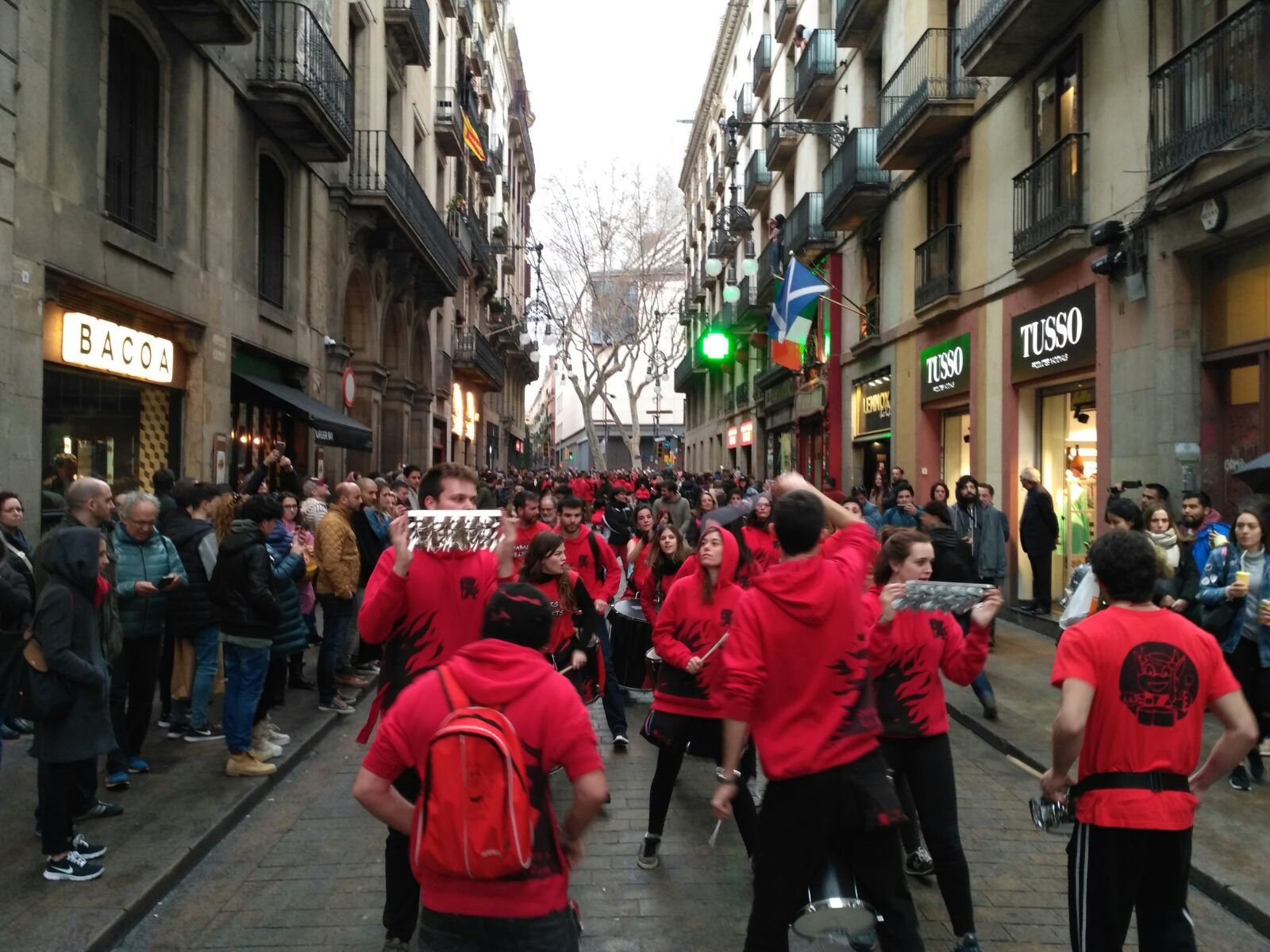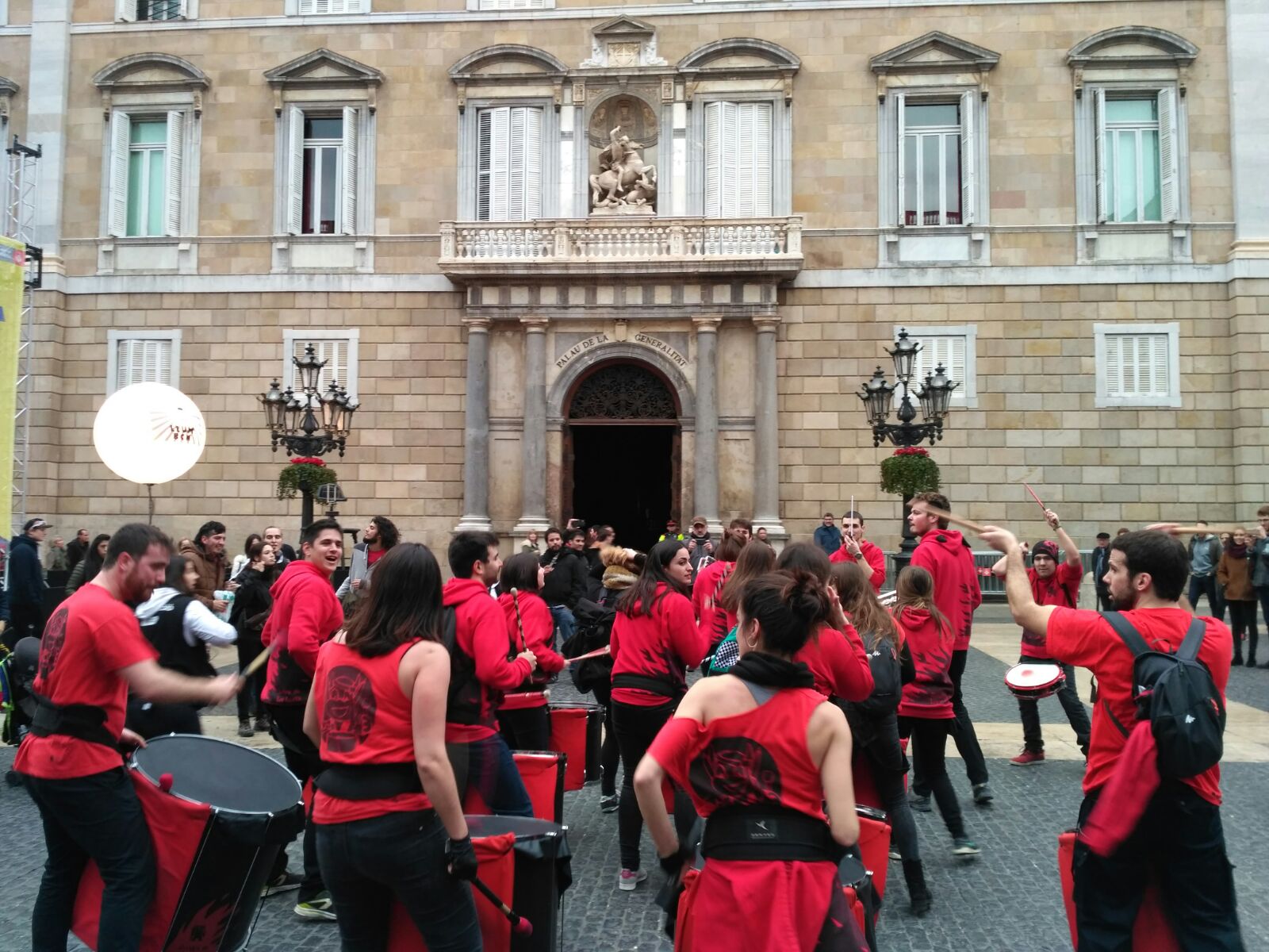 A més a més, vam tenir l’honor d’obrir la tabalada i vam anar des de Plaça Reial, passant per La Rambla i el Carrer Ferran fins a la Plaça Sant Jaume. Allà, desenes de tabalers de totes les colles participants vam tocar conjuntament. Grans i petits, barrejats, tots tocant al mateix so, per deixar pas a les colles de diables infantils que entraven amb ganes de cremar i de fer córrer a qualsevol al Correfoc -dels més menuts- de Santa Eulàlia.
