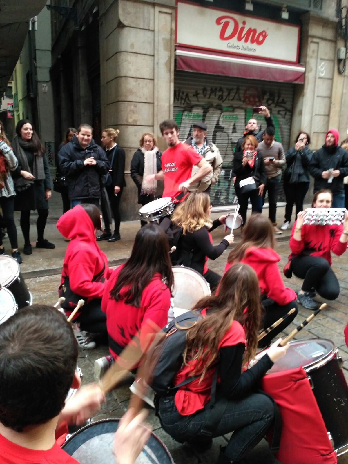 Enguany, el so dels batecs del cor de Santa Eulàlia en forma de cercavila va estar organitzar per primer cop per Diables de Les Corts, col·laborant amb l’organització de les festes. Tot i el mal pronòstic del temps, vam poder fer la tabalada animant els carrers del Barri Gòtic i fent ballar a tots els vianants que passaven.