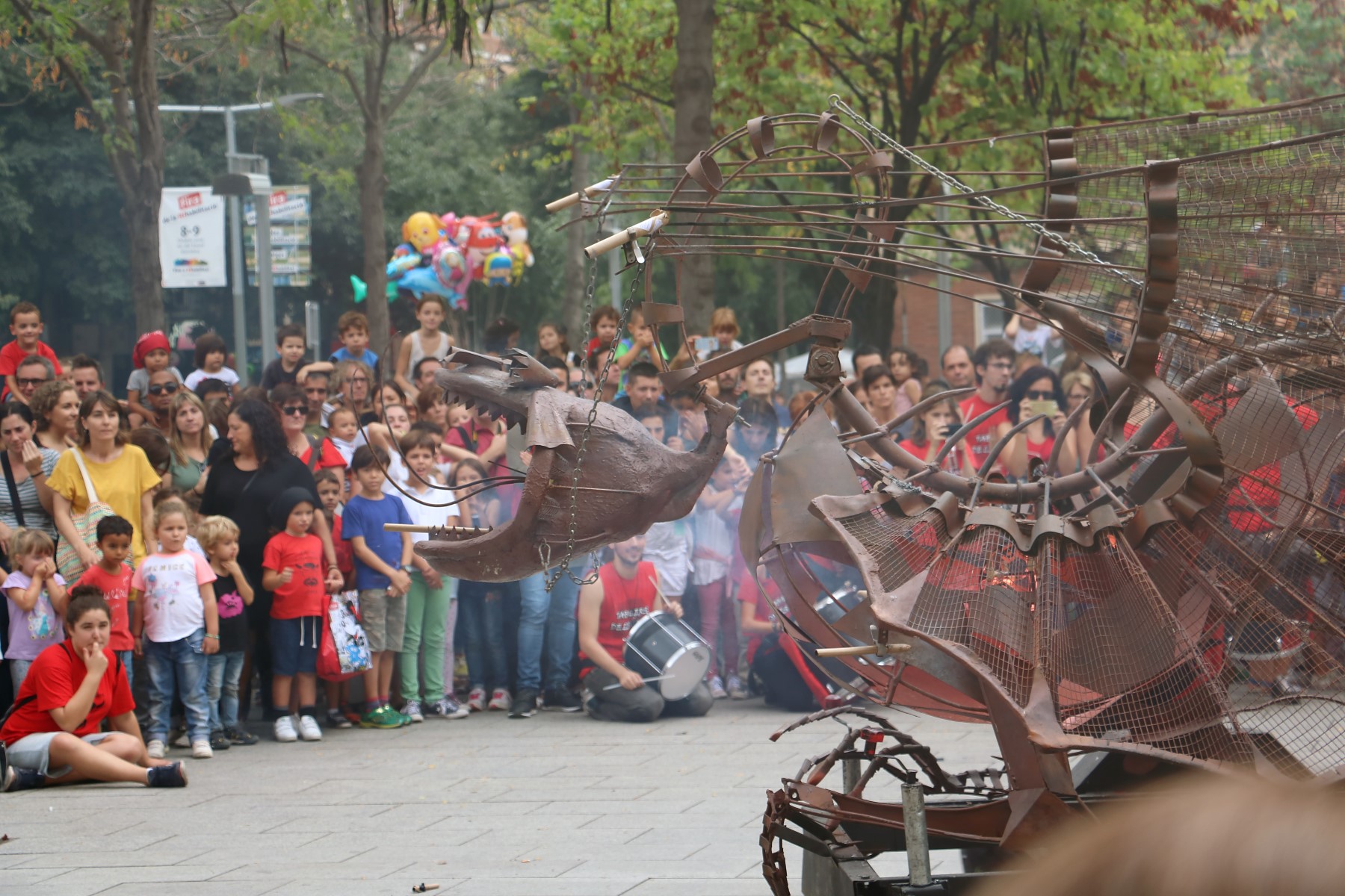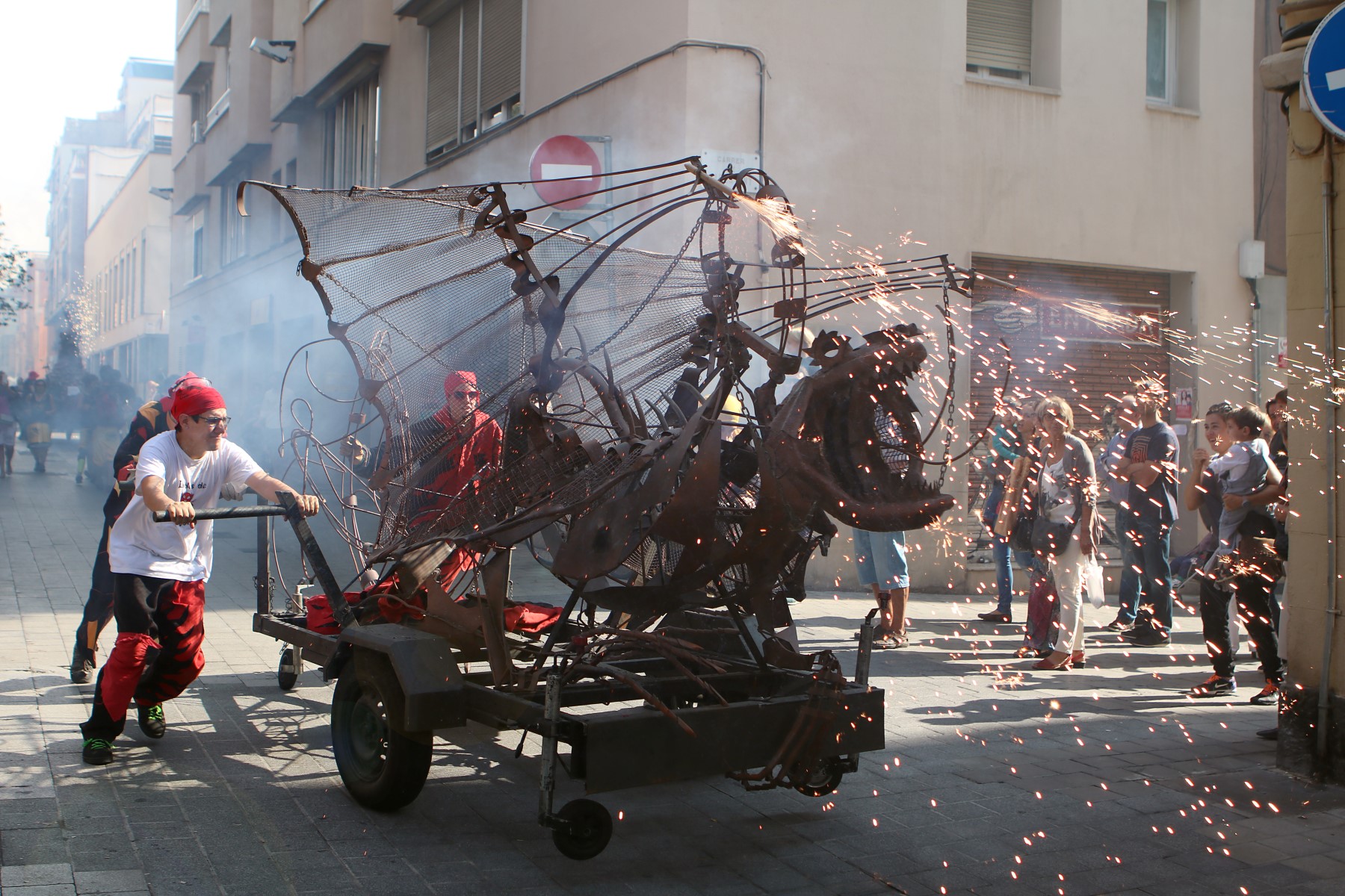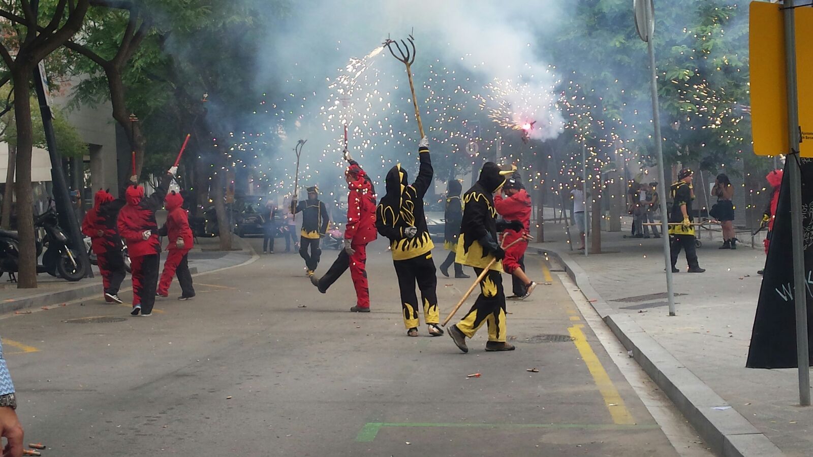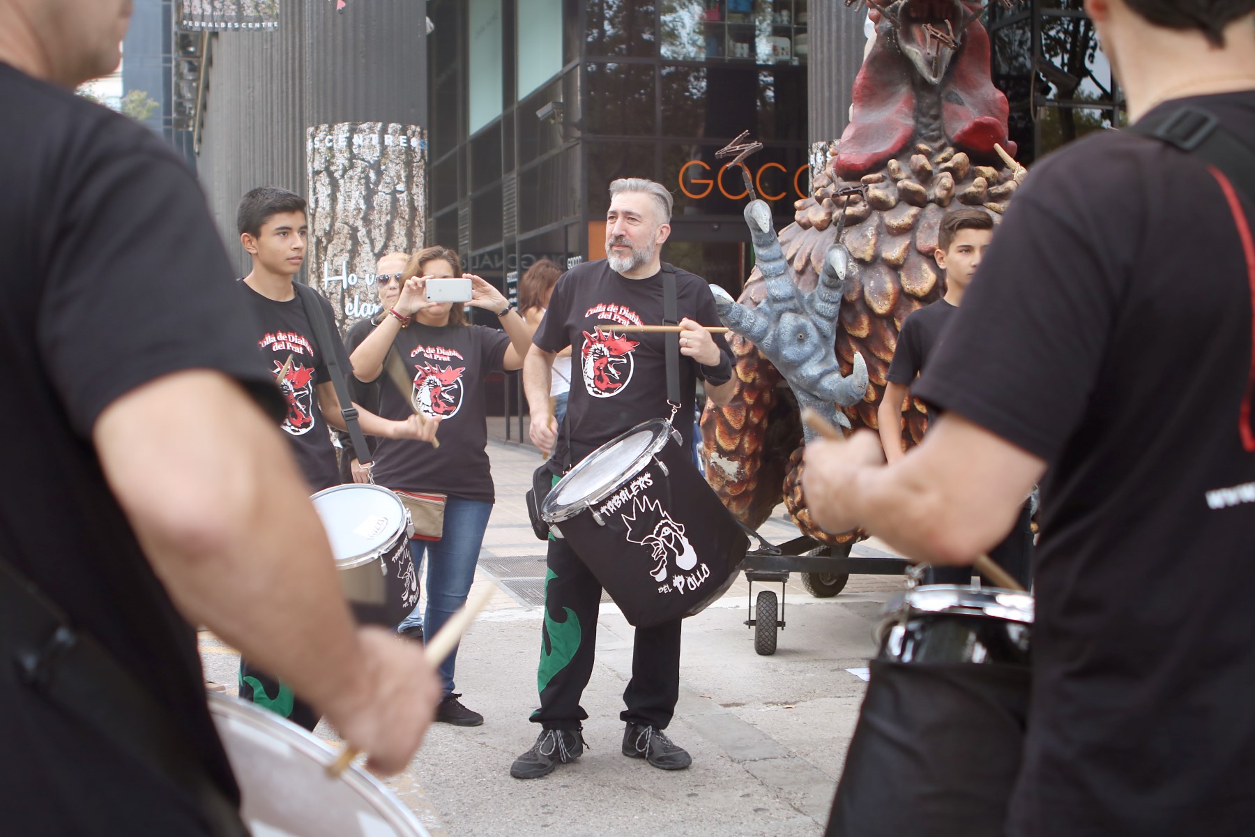 Totes les colles vam començar el particular cercavila a la Avinguda Diagonal Diagonal amb el carrer de Joan Güell, preparats per endinsar-nos un cop més al casc antic del nostre barri. Les dues colles adultes de foc i percussió que compartim el barri, Bocs i Diables, vàrem cremar de manera conjunta durant tot el seguici donant, un cop més, un espectacle sublim que tothom va gaudir i aplaudir. A més a més de treure a remenar les ales del Guardià de Les Corts, conjuntament amb Bocs i Repúbli-k de l’Avern!