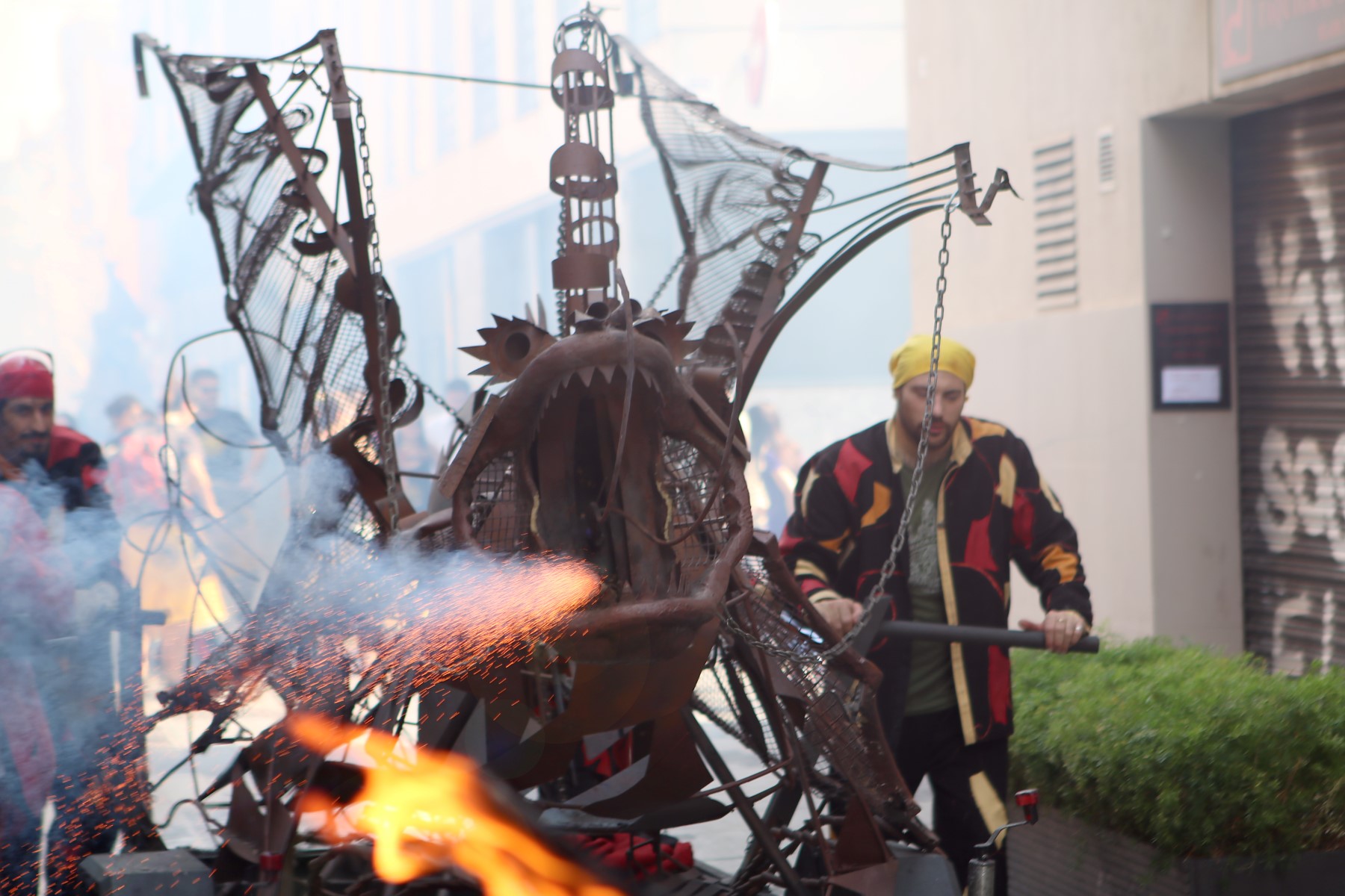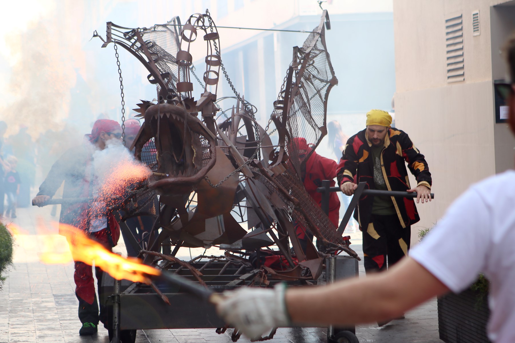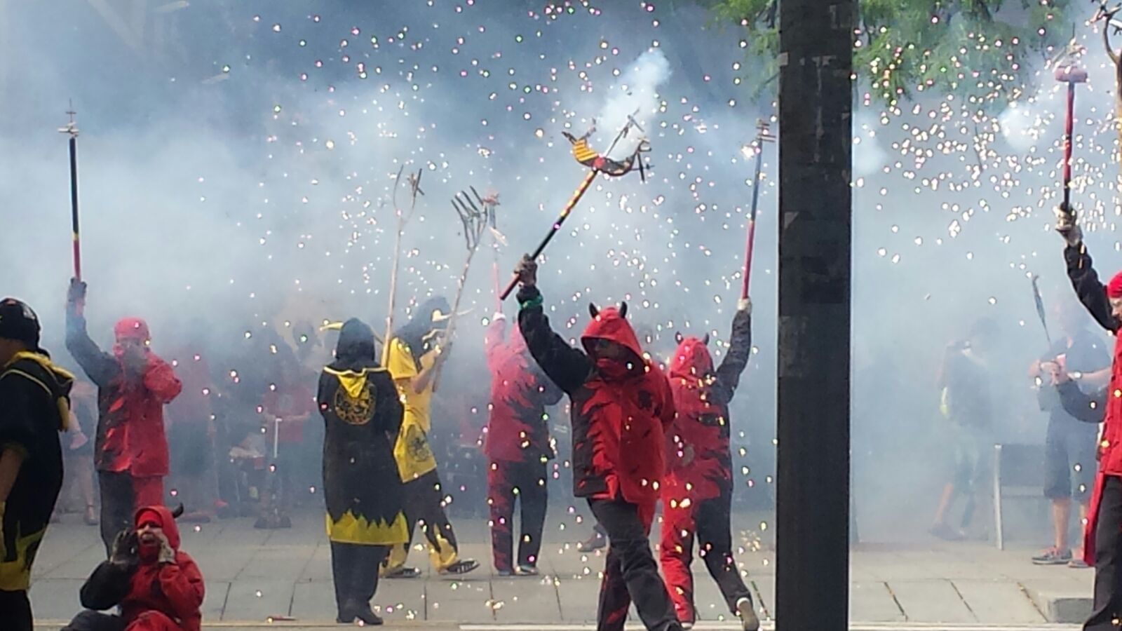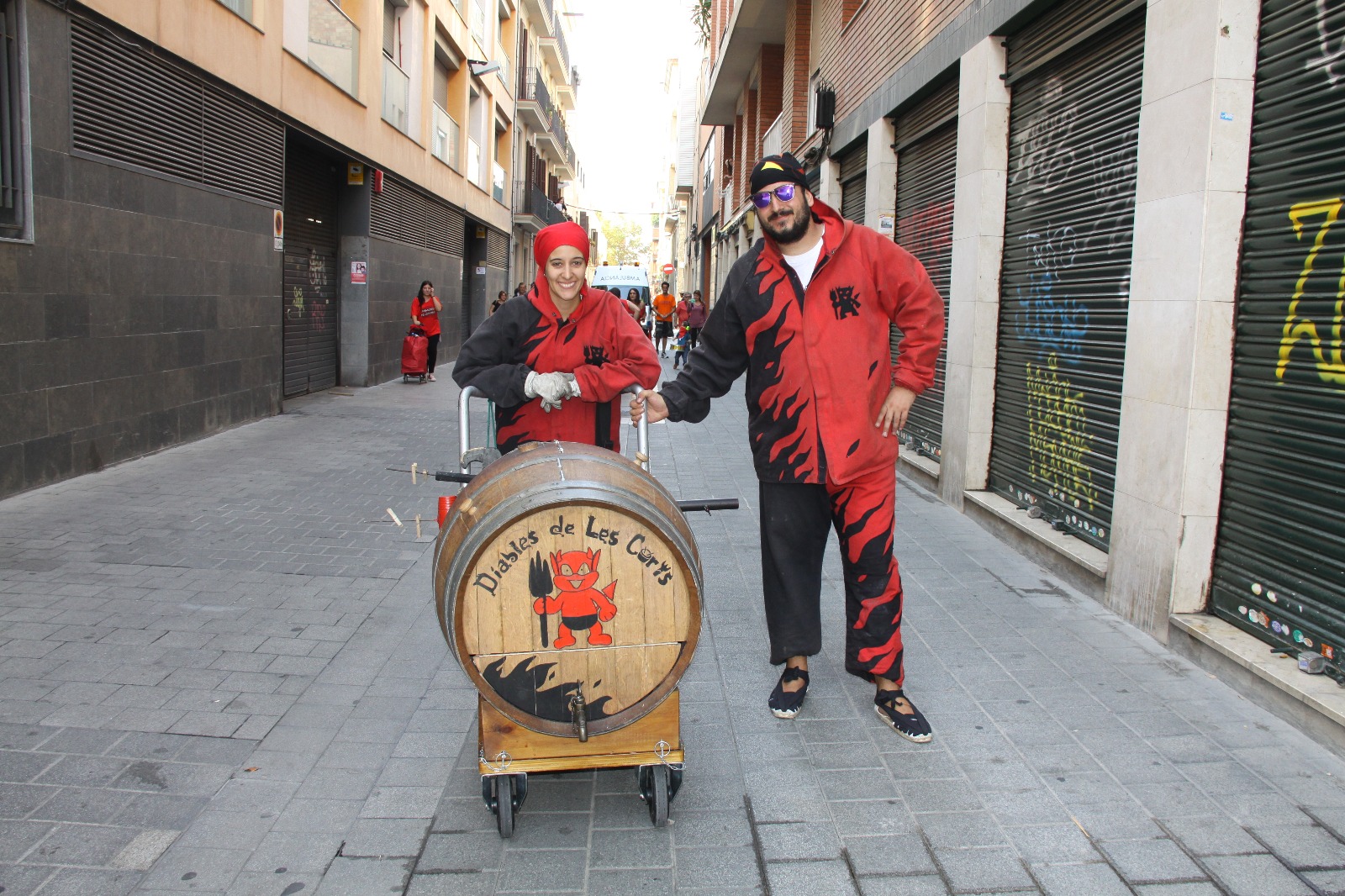 Totes les colles vam començar el particular cercavila a la Avinguda Diagonal Diagonal amb el carrer de Joan Güell, preparats per endinsar-nos un cop més al casc antic del nostre barri. Les dues colles adultes de foc i percussió que compartim el barri, Bocs i Diables, vàrem cremar de manera conjunta durant tot el seguici donant, un cop més, un espectacle sublim que tothom va gaudir i aplaudir. A més a més de treure a remenar les ales del Guardià de Les Corts, conjuntament amb Bocs i Repúbli-k de l’Avern!