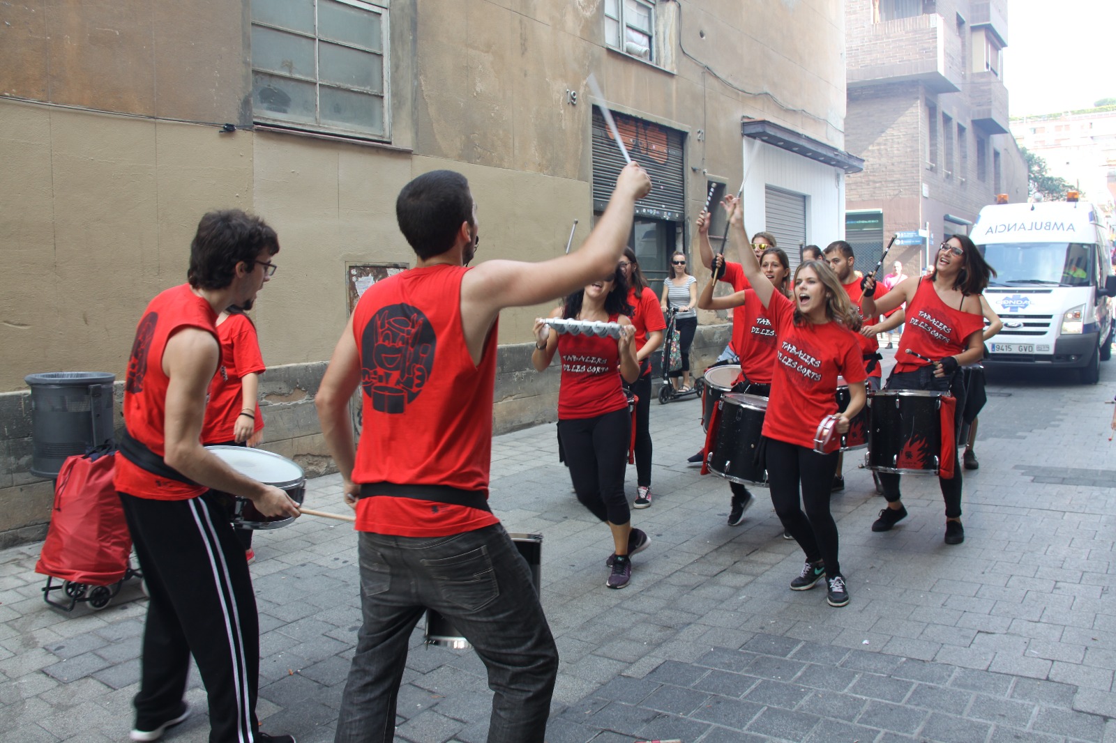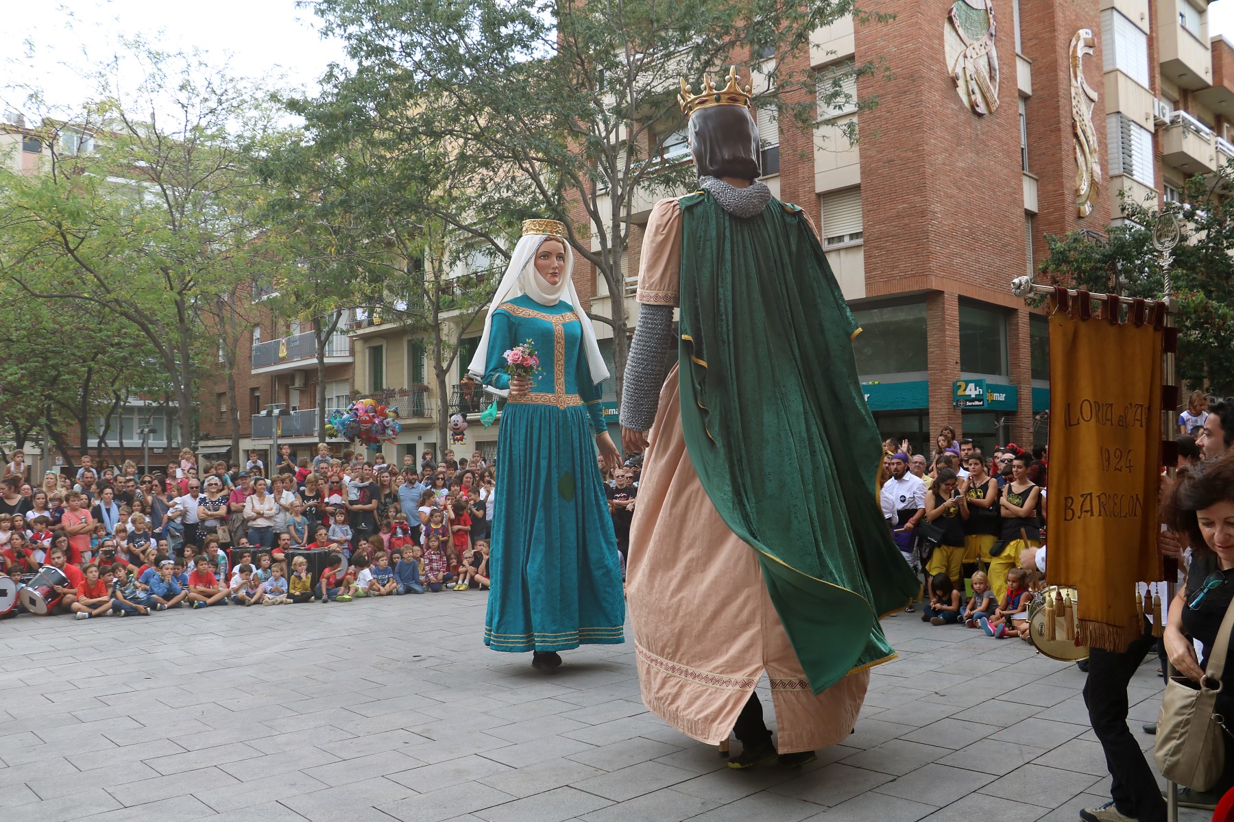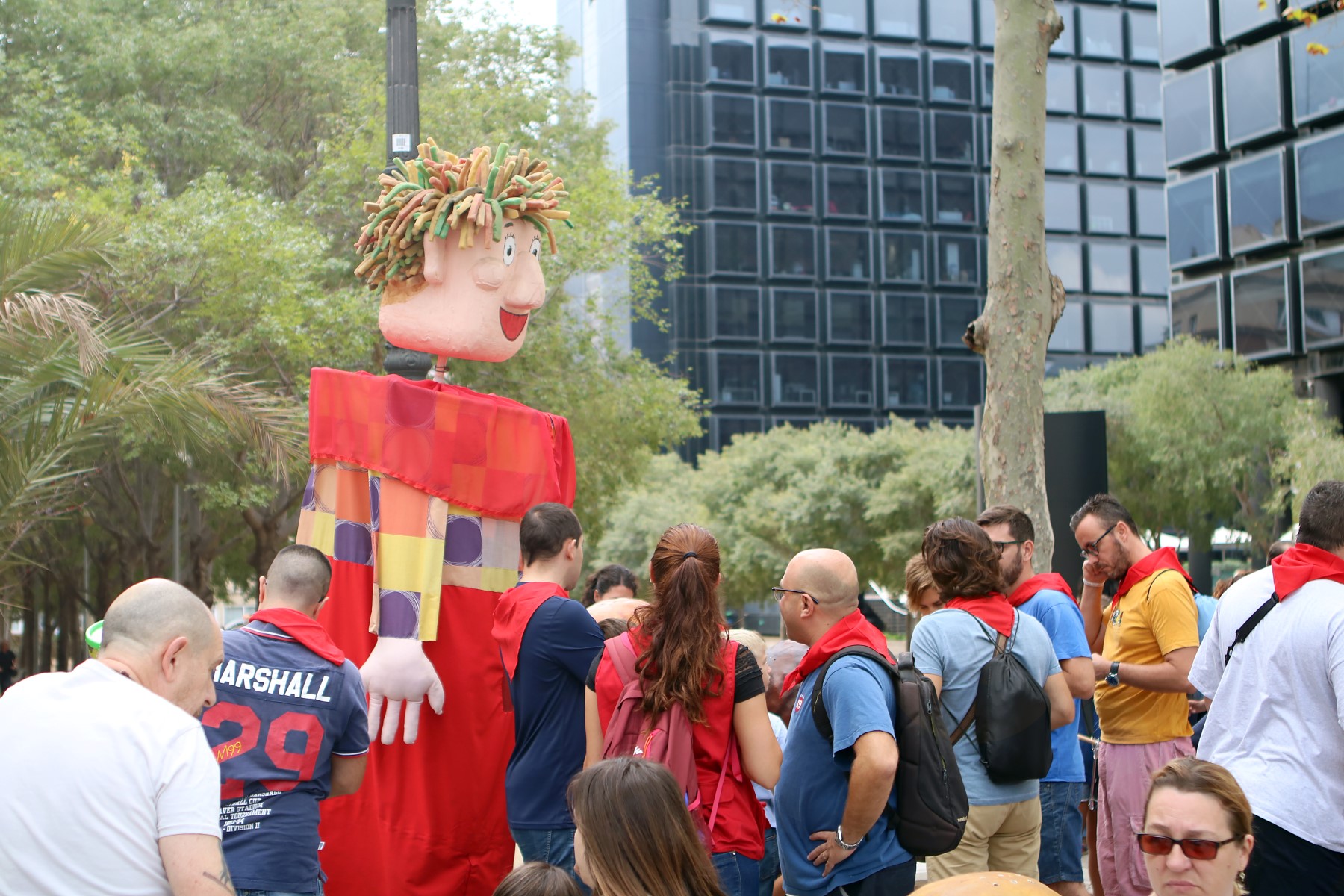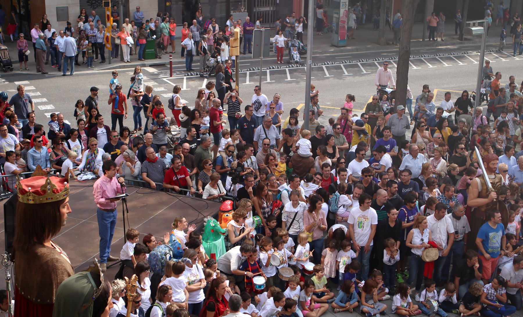 Un cop arribats a la plaça Comas i congregats davant de l’ajuntament, vam escoltar les solemnes paraules del pregó de Festa Major a càrrec de la directora de l’Orfeó de Les Corts -amb motiu del 50è aniversari d’aquesta entitat cultural-, que poc després ens van delectar amb una petita demostració del seu treball i amb un petit taller coral. Un cop fet això, es va procedir a fer els lluïments de les diferents colles de cultura popular que ens havíem congregat allà, tant de Les Corts com de convidades.