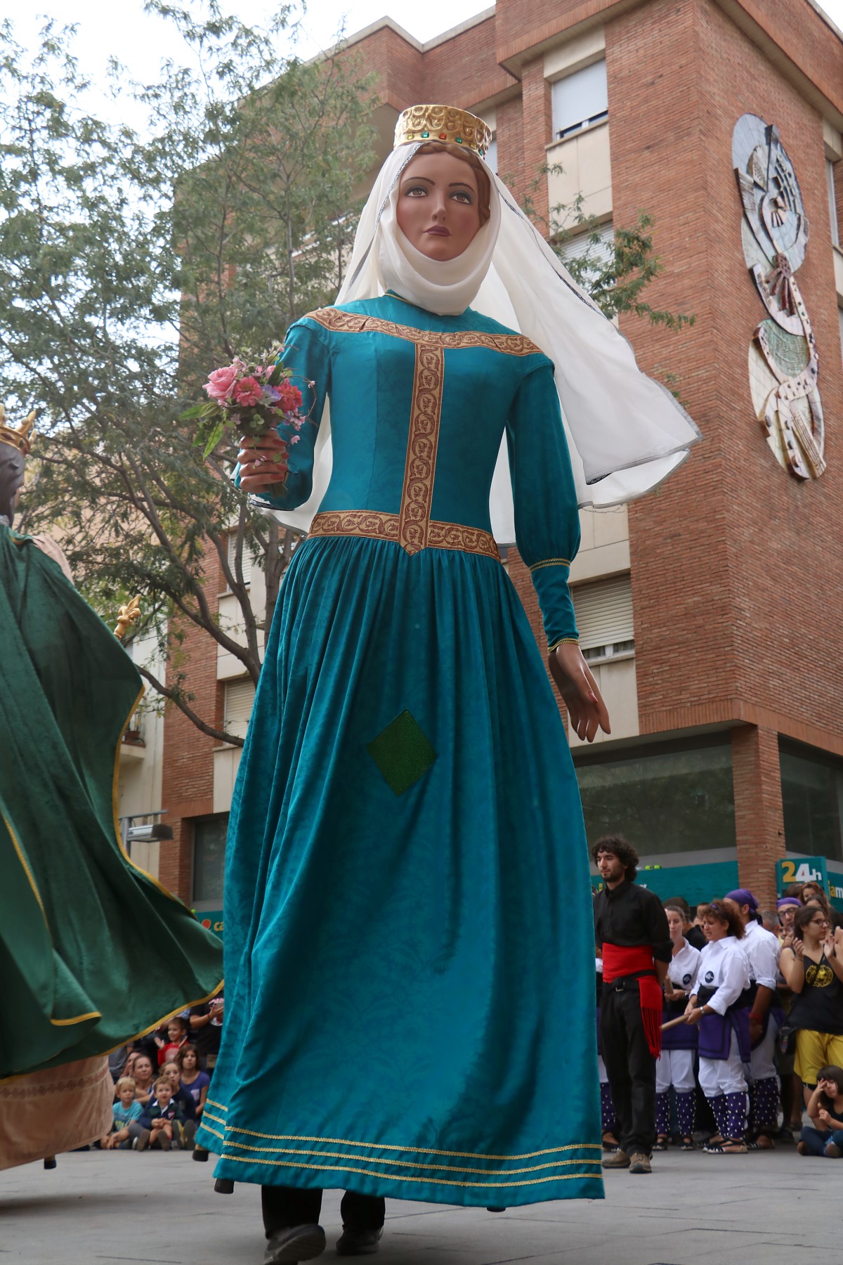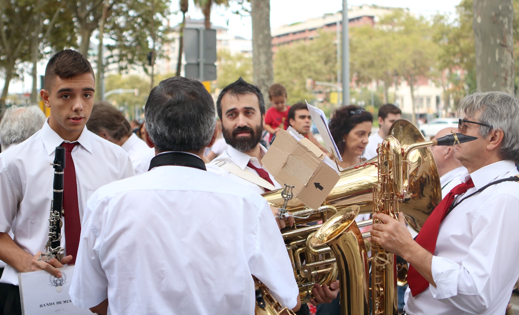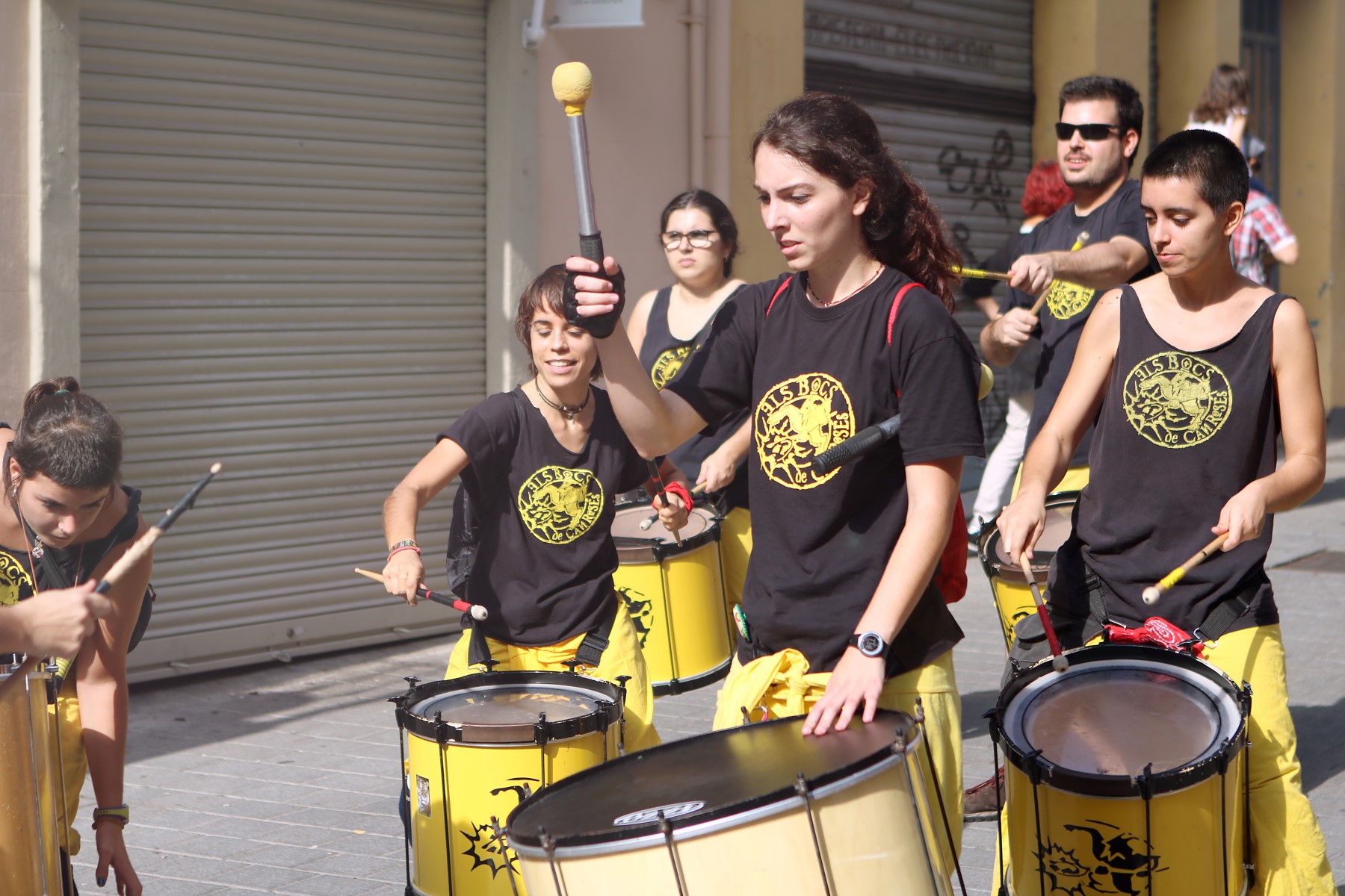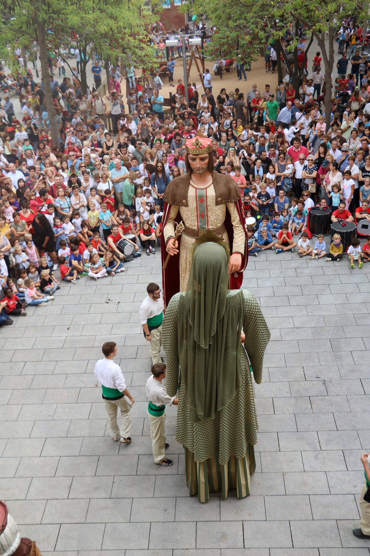 Un cop arribats a la plaça Comas i congregats davant de l’ajuntament, vam escoltar les solemnes paraules del pregó de Festa Major a càrrec de la directora de l’Orfeó de Les Corts -amb motiu del 50è aniversari d’aquesta entitat cultural-, que poc després ens van delectar amb una petita demostració del seu treball i amb un petit taller coral. Un cop fet això, es va procedir a fer els lluïments de les diferents colles de cultura popular que ens havíem congregat allà, tant de Les Corts com de convidades.