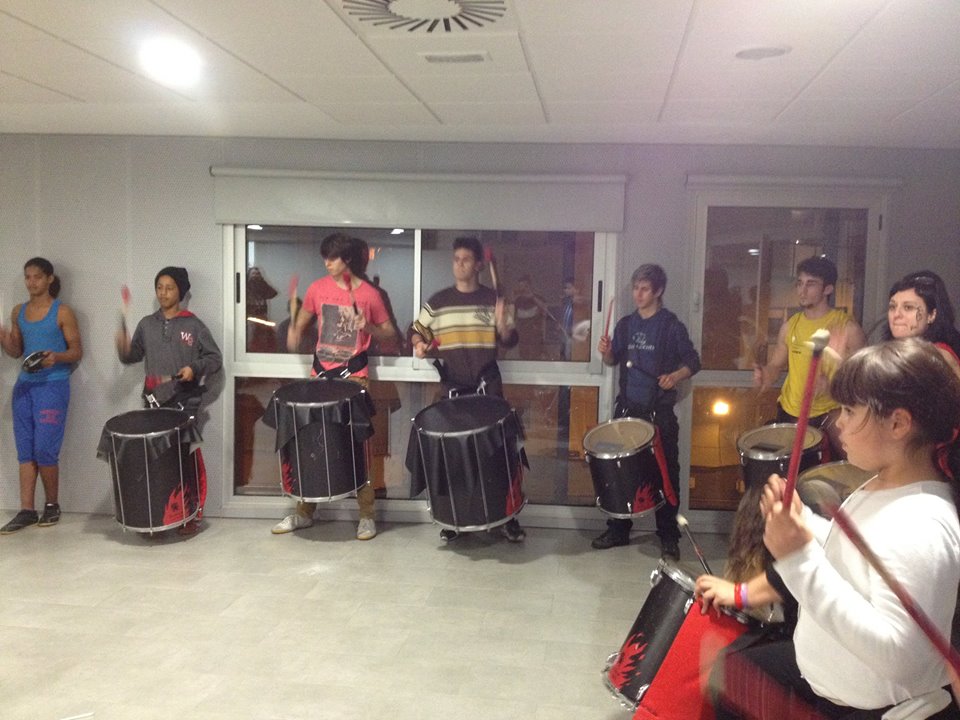 Els nois i noies ens van rebre amb moltes ganes de passar-s’ho be i descobrir el món de la percussió al carrer de la ma de Diables de Les Corts. Primer, tot ballant -inclús amb coreos improvisades per part d’ells- al ritme dels nostres tabalers i amb un petit tast de pirotècnia, que van trastocar mig barri de Collblanc. Entre tots vam aplegar molts veïns i veïnes, que van baixar encuriosits per la marxa dels adoles i els Diables de Les Corts. Al finalitzar l’exhibició, a l’auditori de l’espai La Claqueta-Cine Romero vam impartir un taller d’iniciació de percussió, que va engegar una passió en els ulls de la gent d’Itaca que ens va fer prou feliços!
