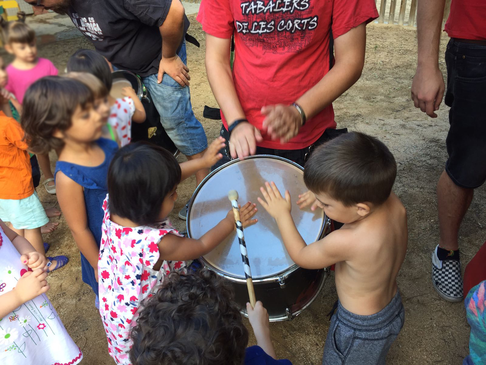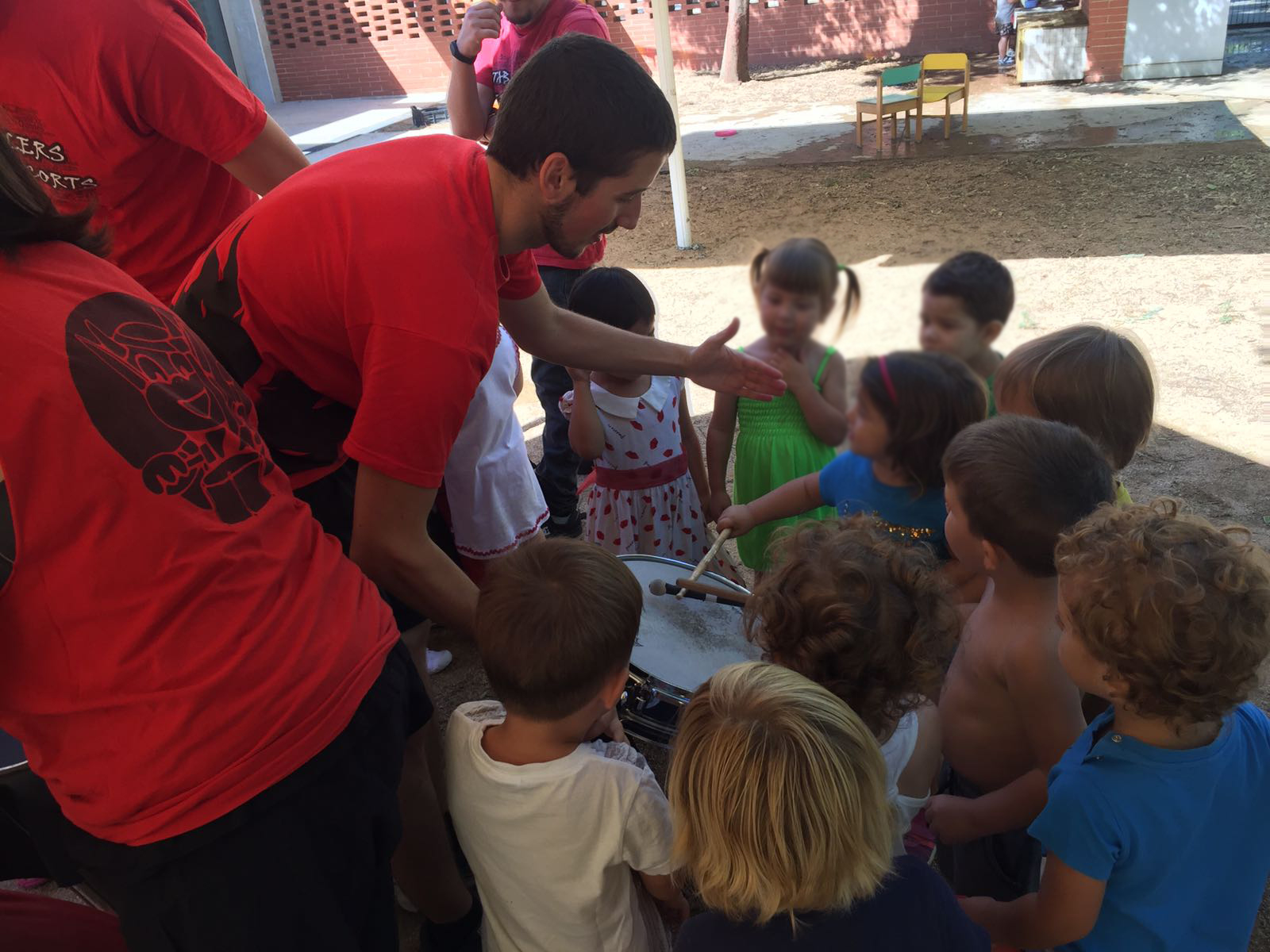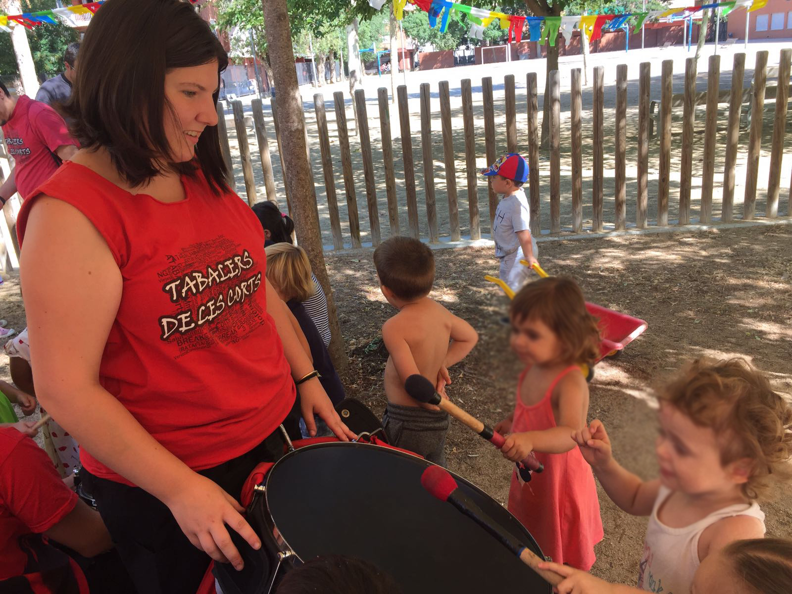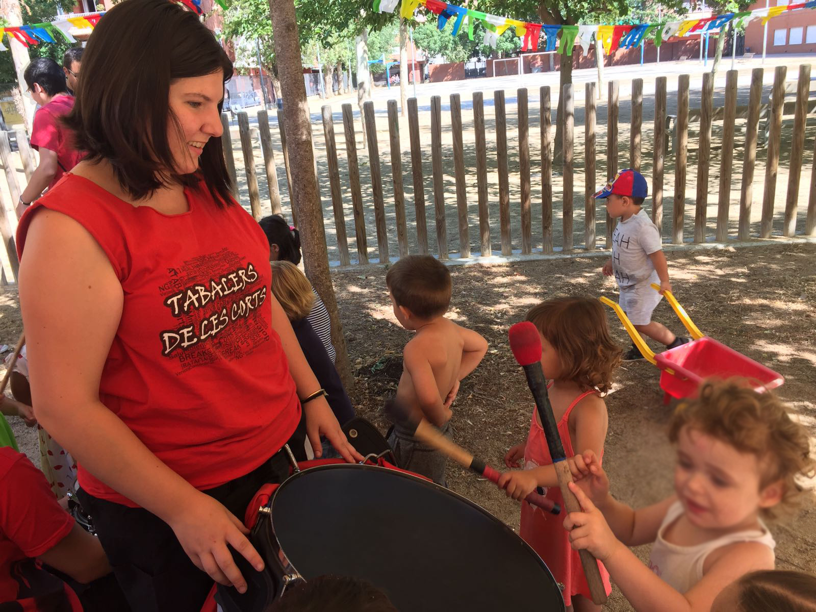 Així doncs, els tabalers de Diables de Les Corts vam col·laborar amb la gran festa de final de curs el passat divendres 30 de juny de l’Escola Bressol Municipal “La Granota” del Prat de Llobregat. Un matí ple de somriures i mirades curioses amb els infants del centre. Des de un petit taller on descobrien els diferents instruments i sons de la percussió, així com els ritmes de cançons infantils adaptades per l’ocasió per part de la colla. I com es tradició, tampoc hi va faltar una tabalada de rigor, on fins i tot un pare es va afegir a l’actuació, tot baixant el seu instrument per acompanyar la gran festa de “La Granota”.