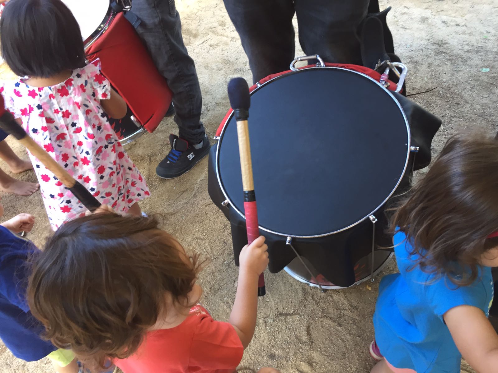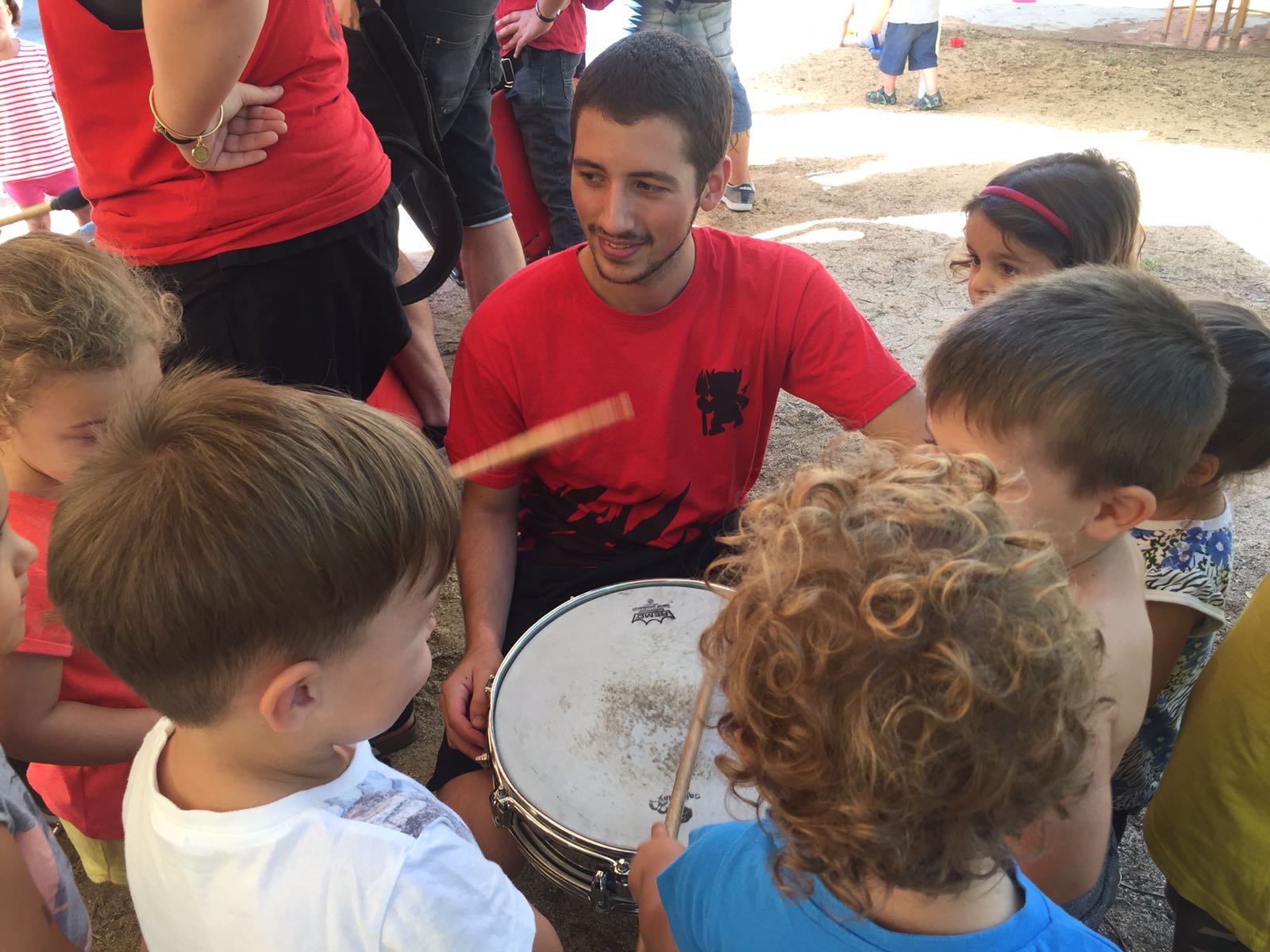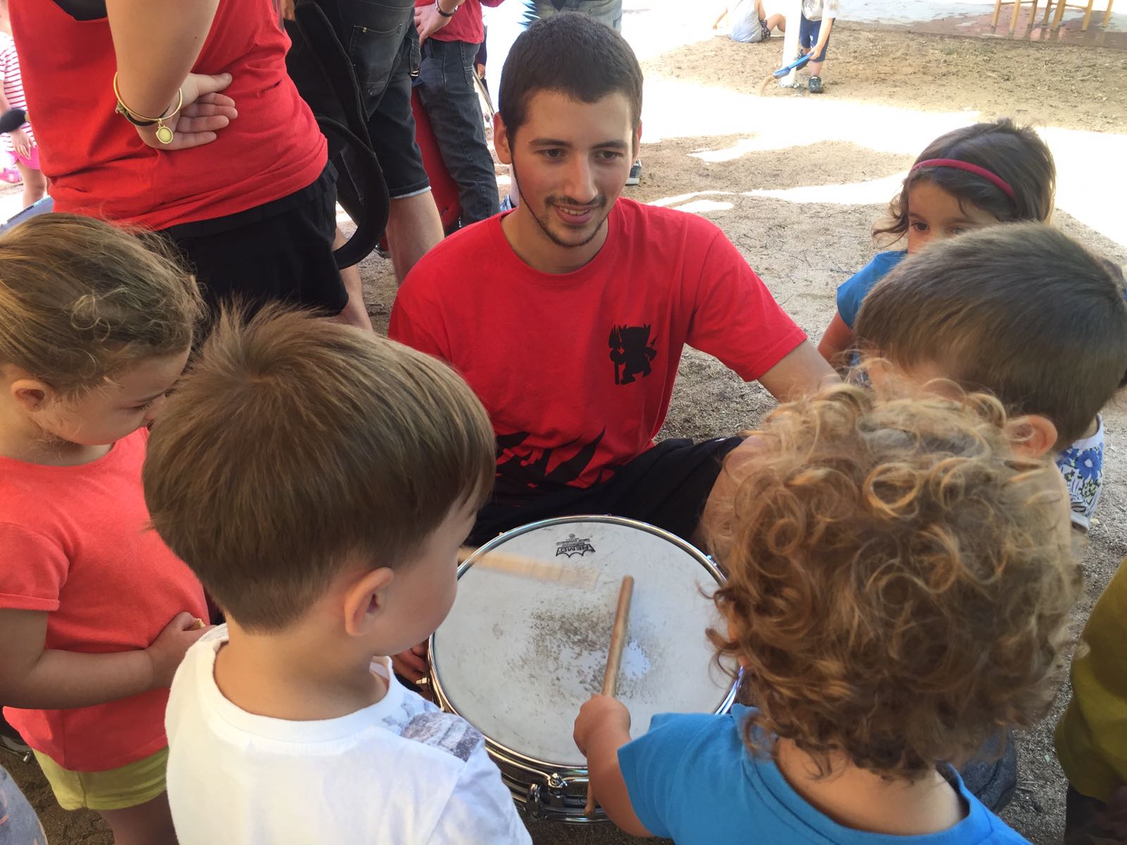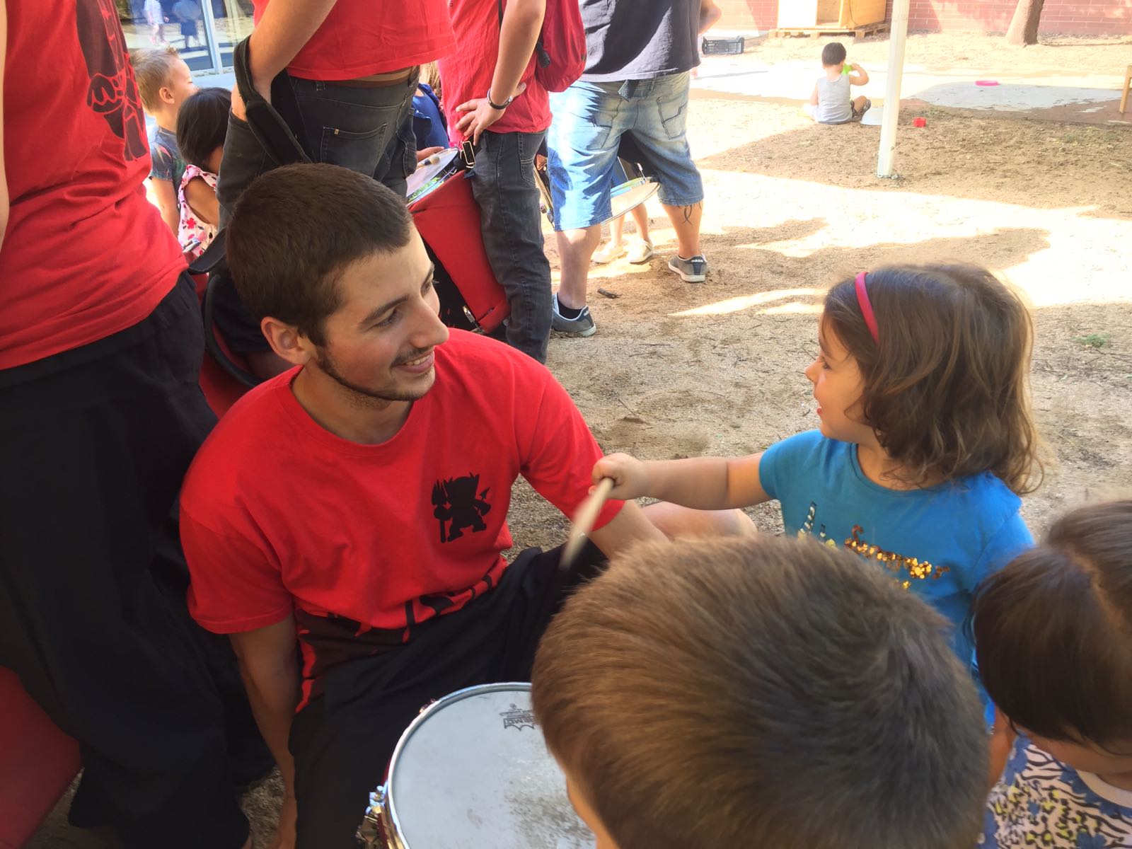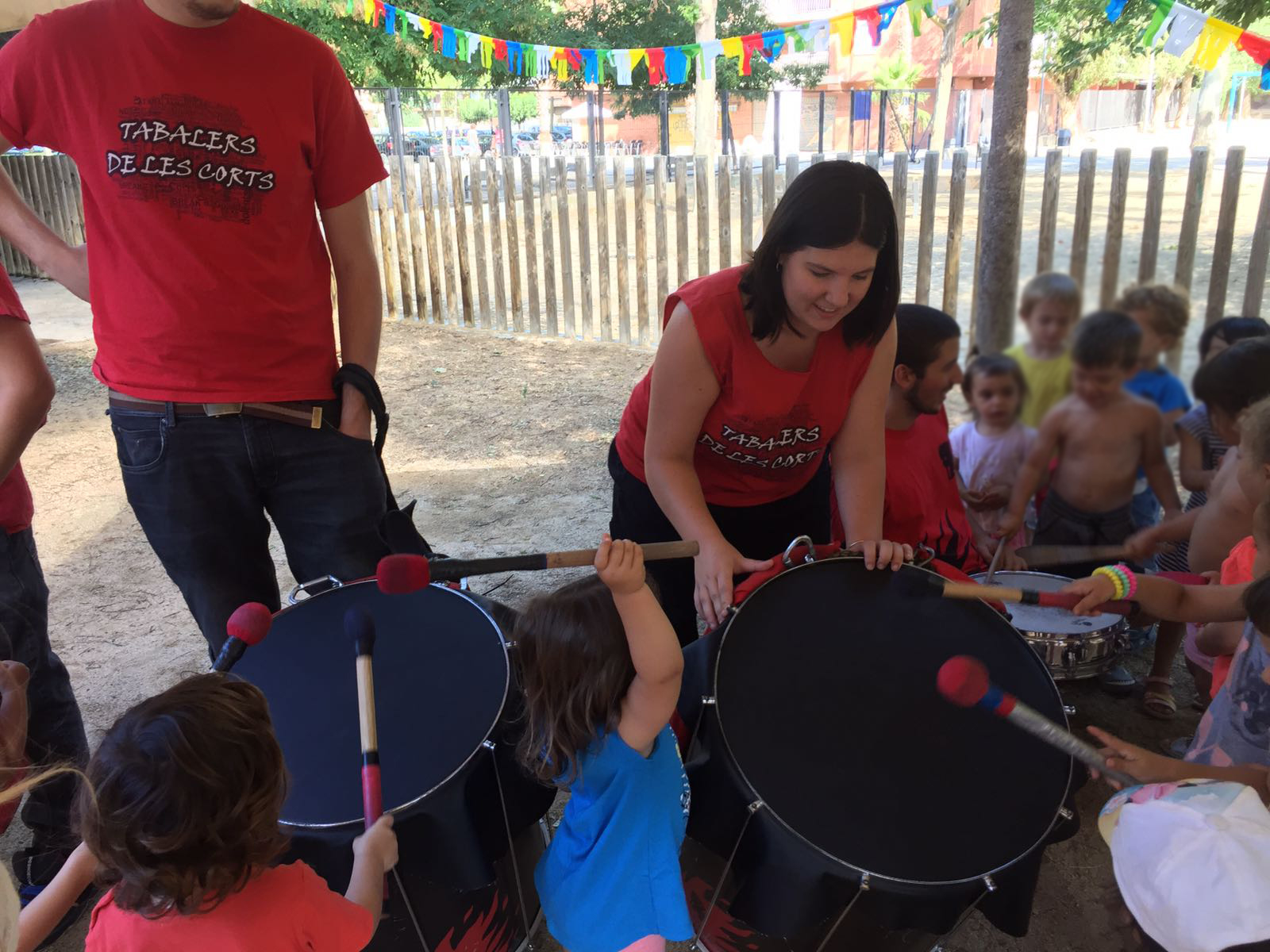 Així doncs, els tabalers de Diables de Les Corts vam col·laborar amb la gran festa de final de curs el passat divendres 30 de juny de l’Escola Bressol Municipal “La Granota” del Prat de Llobregat. Un matí ple de somriures i mirades curioses amb els infants del centre. Des de un petit taller on descobrien els diferents instruments i sons de la percussió, així com els ritmes de cançons infantils adaptades per l’ocasió per part de la colla. I com es tradició, tampoc hi va faltar una tabalada de rigor, on fins i tot un pare es va afegir a l’actuació, tot baixant el seu instrument per acompanyar la gran festa de “La Granota”.