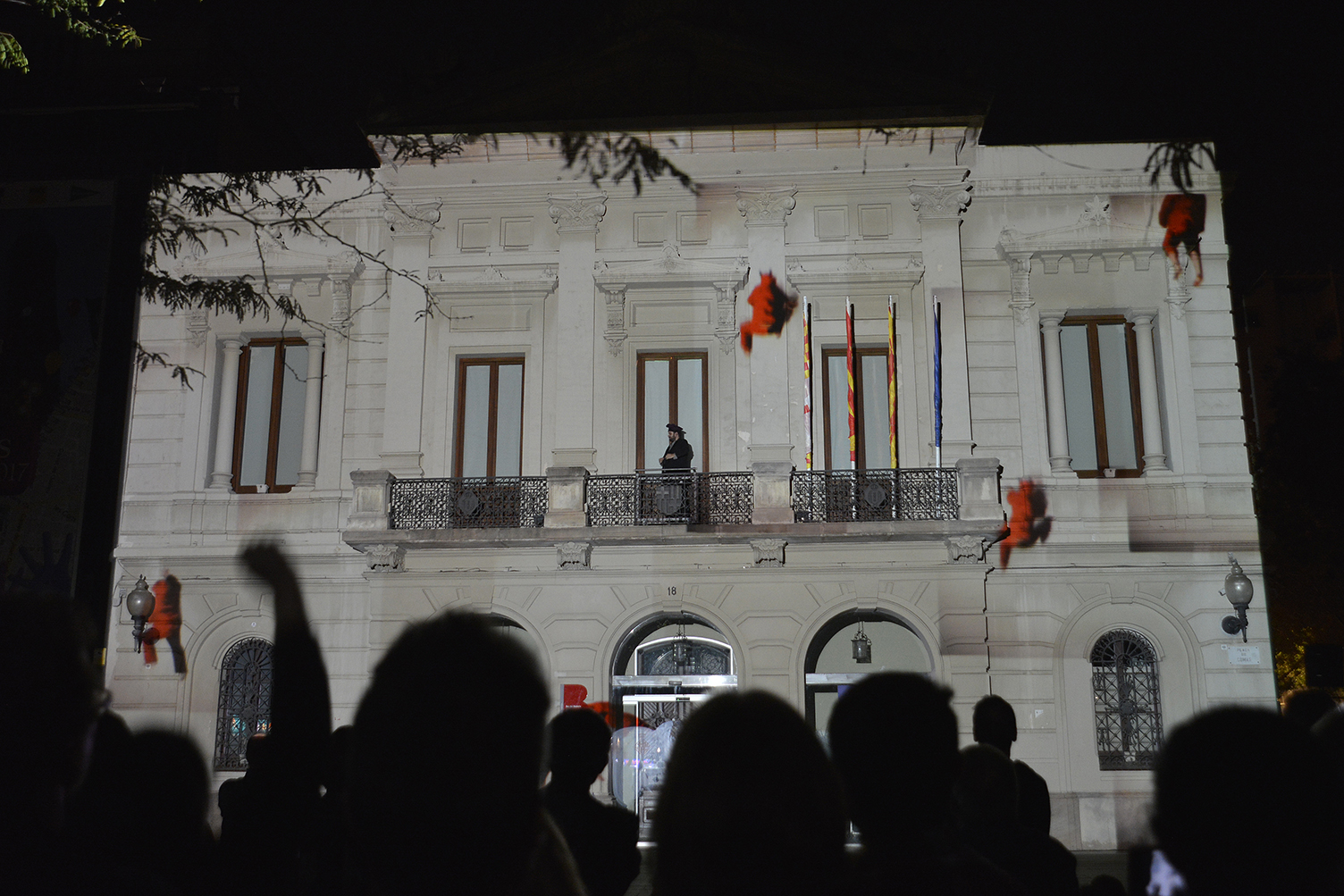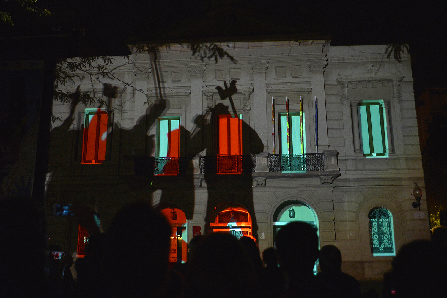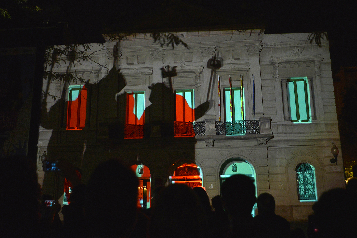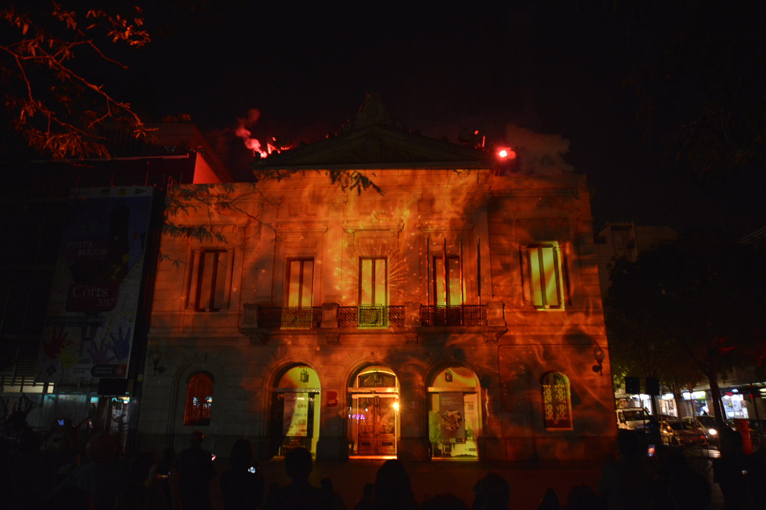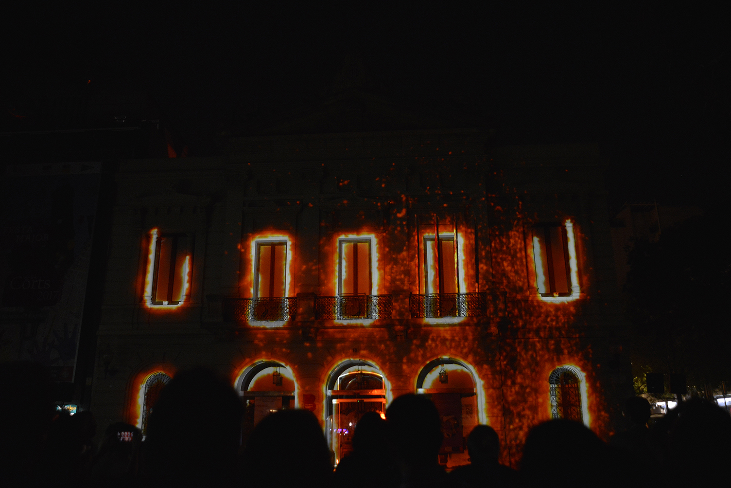 Tot plegat, el divendres 29 de setembre, primer dia de festa major. El mapping va ser un bon moment per congregar moltes veïnes i d’una manera entretinguda, també ensenyar la història del poble de Les Corts, de tradicions i mites, i realitats a vegades massa oblidades. Partint de la primera festa major documentada al 1806, passant pel període d’independència cortsenca, l’origen d’en Pau Farinetes i del sobrenom “panarres” per a la gent cortsenca, la presó de dones del barri… Per cloure amb un petit recordatori a l’Oriol Canals i una cremada de l’Ajuntament.