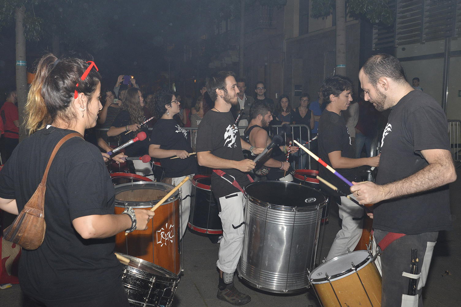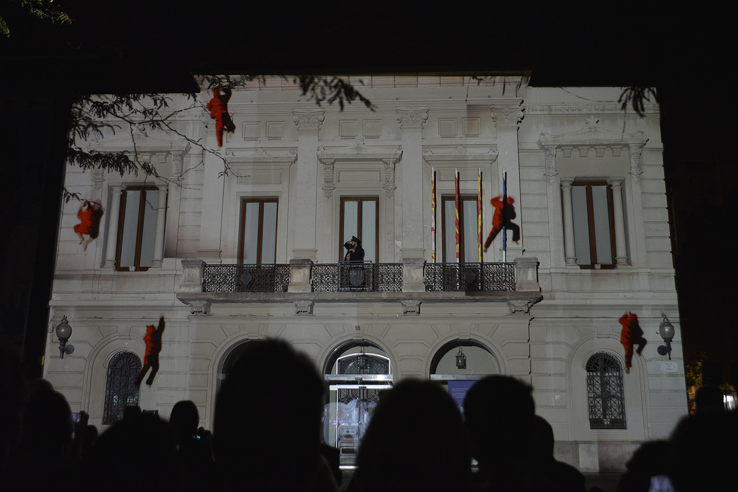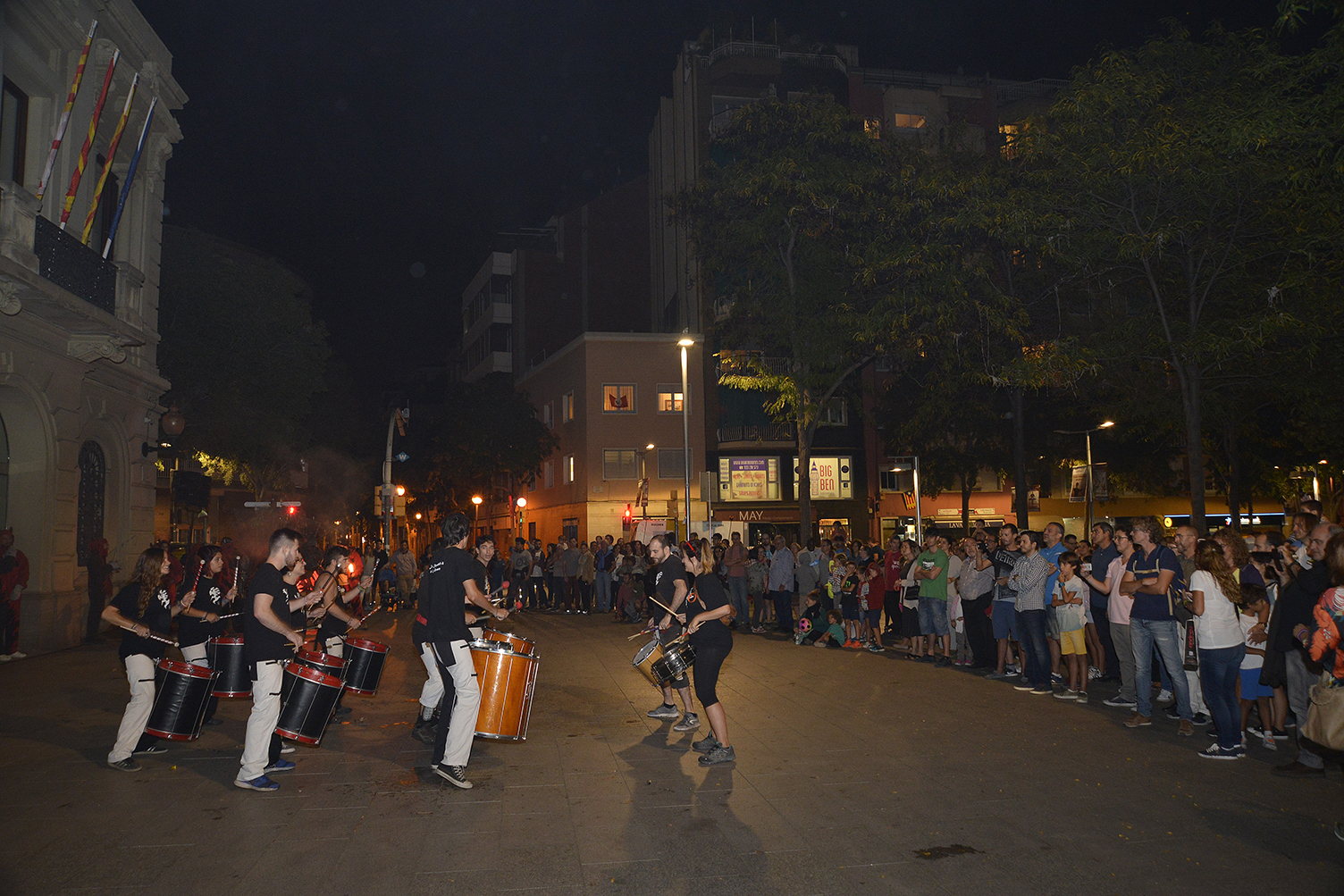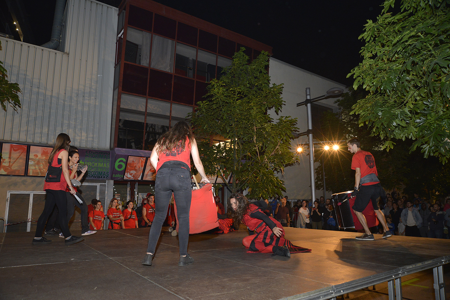 Enguany estrenàvem conjuntament amb La Caldera Les Corts, el centre d’arts escèniques veí nostre, el Toc d’Inici de Festa Major de Les Corts. Des de que ens vam conèixer al 2015, vam estar treballant en un acte que mescles la tradició del món del foc i la percussió al carrer amb la dansa contemporània. I fruit de reunions i amb unes quantes cerveses per ajudar, neix el Toc d’Inici amb una aposta clara per la projecció d’un mapping a la façana de l’Ajuntament de Les Corts.