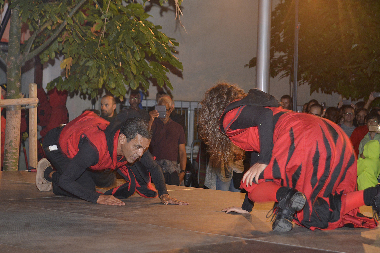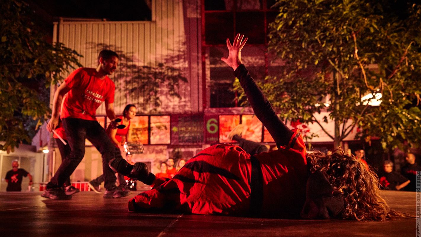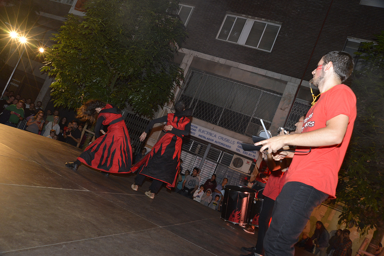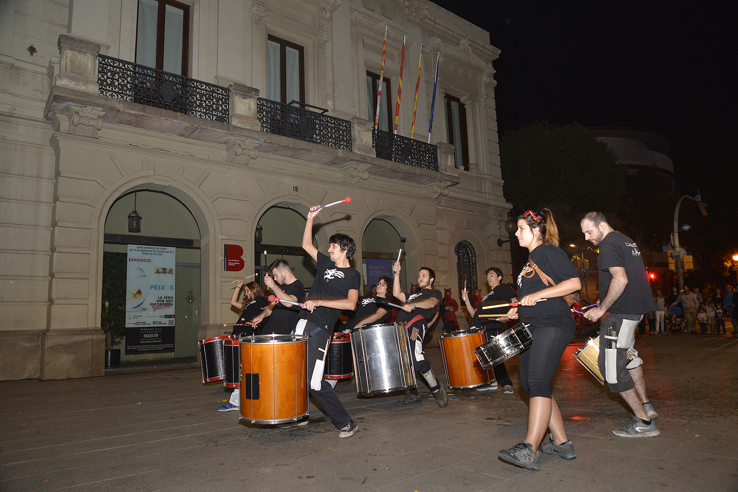 Enguany estrenàvem conjuntament amb La Caldera Les Corts, el centre d’arts escèniques veí nostre, el Toc d’Inici de Festa Major de Les Corts. Des de que ens vam conèixer al 2015, vam estar treballant en un acte que mescles la tradició del món del foc i la percussió al carrer amb la dansa contemporània. I fruit de reunions i amb unes quantes cerveses per ajudar, neix el Toc d’Inici amb una aposta clara per la projecció d’un mapping a la façana de l’Ajuntament de Les Corts.