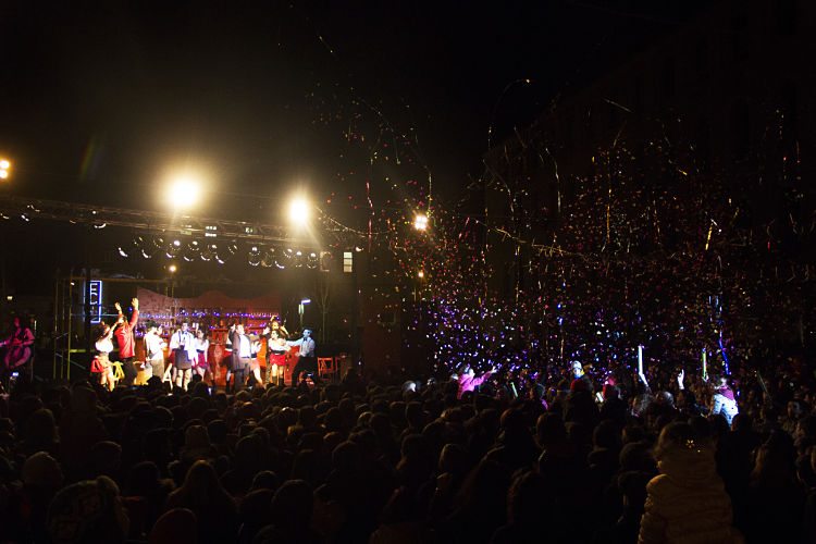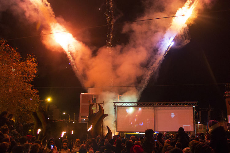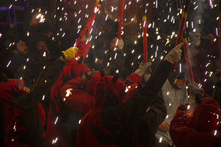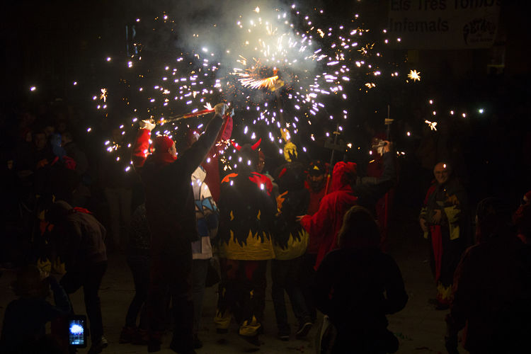 Després de gaudir d’un magnífic espectacle musical que havia preparat La Satànica i la resta d’entitats de Sant Andreu de Palomar i rodalies, a les 20:30 del vespre, després de la invocació de Satanàs cridant els seus diables, vam creuar la porta de l’infern per iniciar els Tres Tombs Infernals. El recorregut que vam fer va consistir en tres tombs al voltant de l’antiga fàbrica de la plaça de Can Fabra on vam passar-ho pipa saltant i ballant mentre cremàvem carrutxes.
